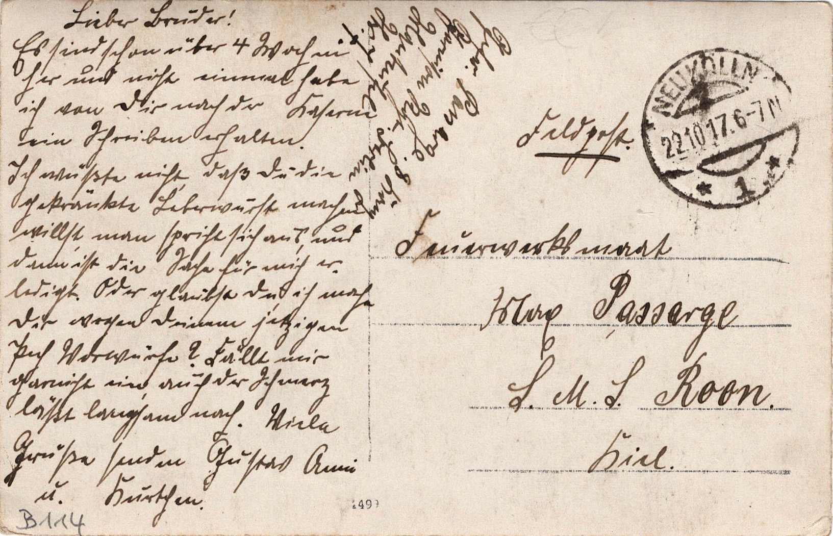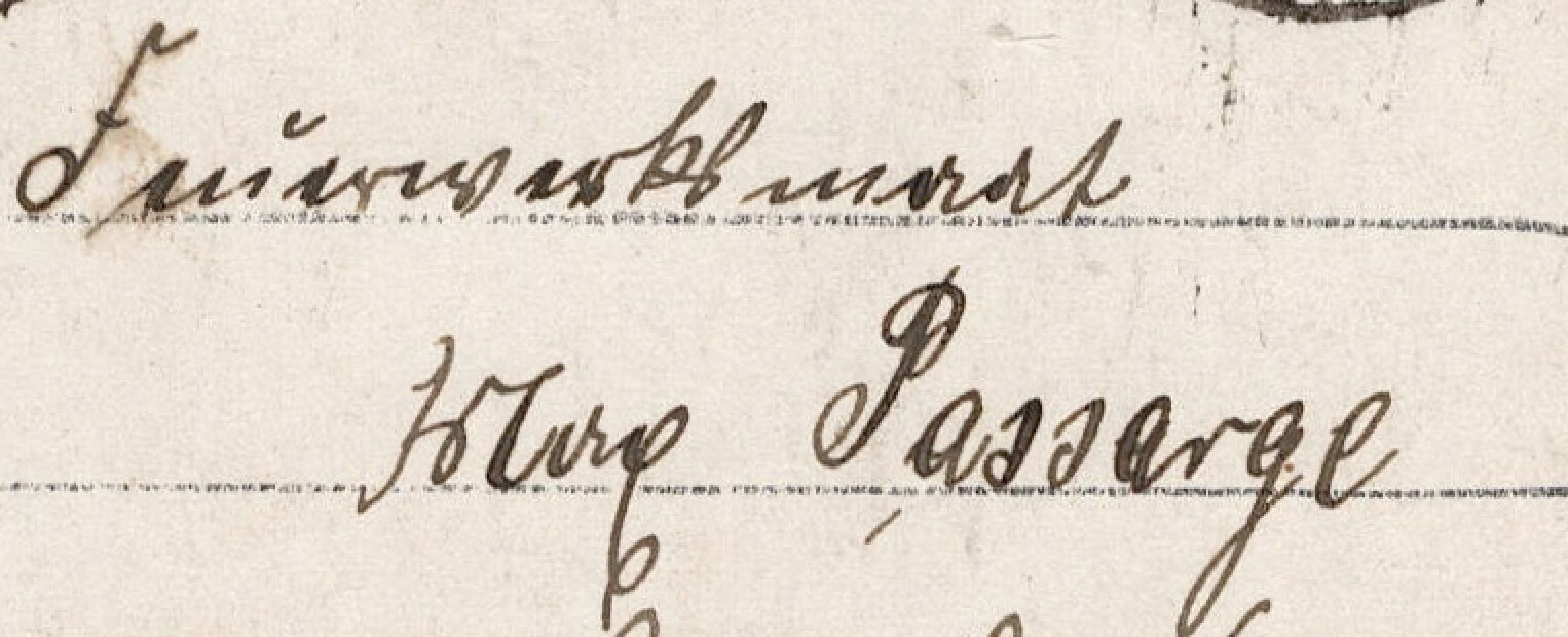 und noch eine Bitte: was steht vor dem Namen des Empfängers Passarge?