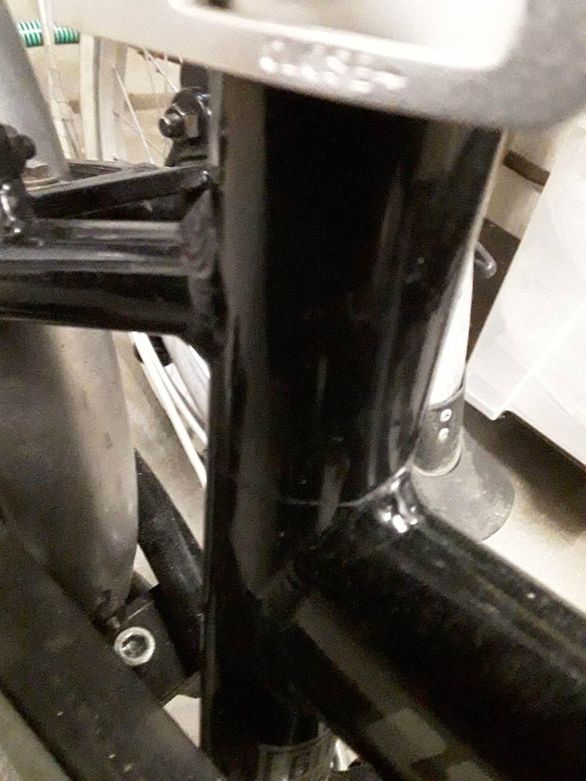 Hallo. Wenn ich es richtig sehe ist der Überstand über dem Oberrohr abgebrochen. Ich vermute mal dass die Stütze nicht weit genug eingesteckt war und zum Bruch geführt hat.