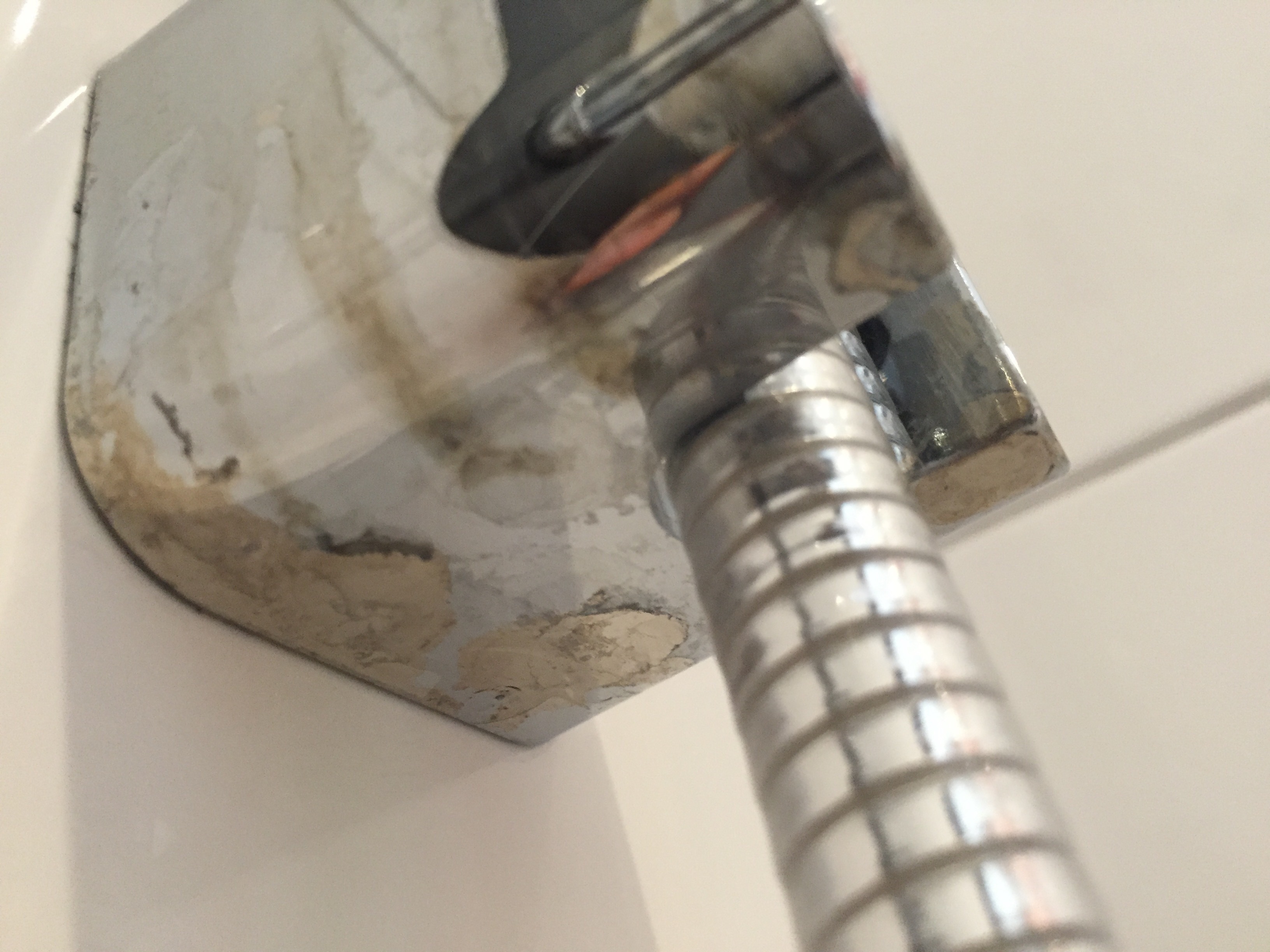 Nu kommt es sehr auf die Einwirkzeit, die Menge des Reinigers, dessen Aggressivität und Konzentration und die Häufigkeit der Reinigung an. Du zeigst Armaturen, an denen die Schäden von unten recht stark sind. Da bilden sich ja auch immer die Tropfen. Und wenn etwas Reiniger zwischen Halterung und Fliese kommt, dann wird der nach dem Duschen evtl raus gespült und wirkt dann stundenlang.