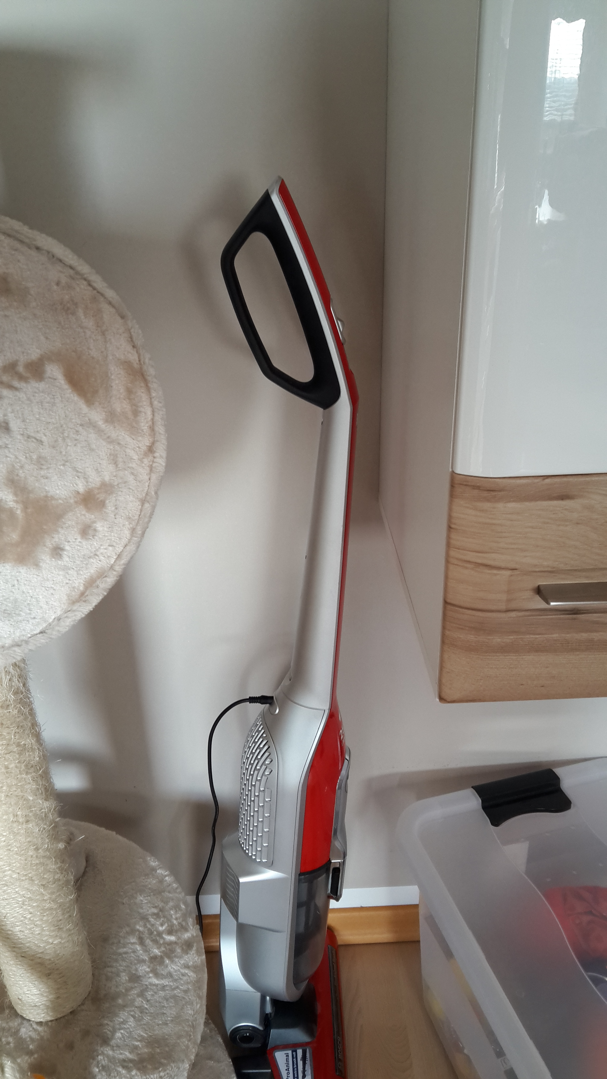 Man kann den Sauger aber auch in seinen Putzschrank stellen. Tür zu und schon ist er gesichert.