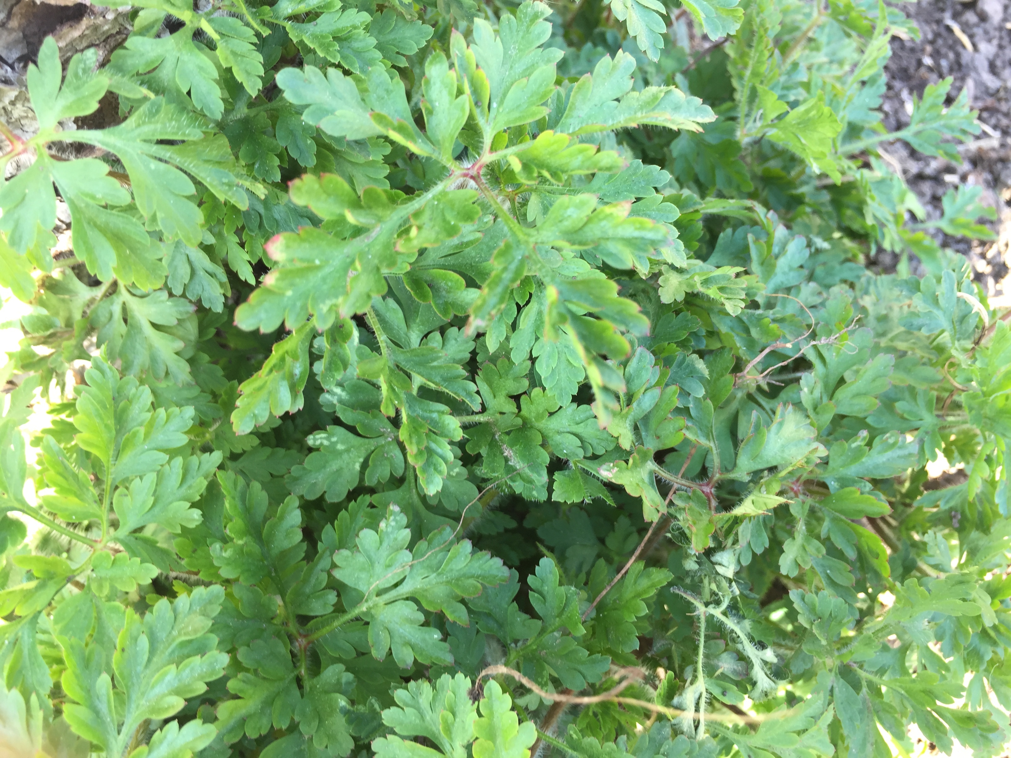 Ich lege mich per Bild ungern fest, meine aber den stinkenden Storchenschnabel zu erkennen, Geranium robertianum. Säät sich aus wie der Teufel. Stinkt echt. Als( getrockneter) Tee aber sehr lecker!