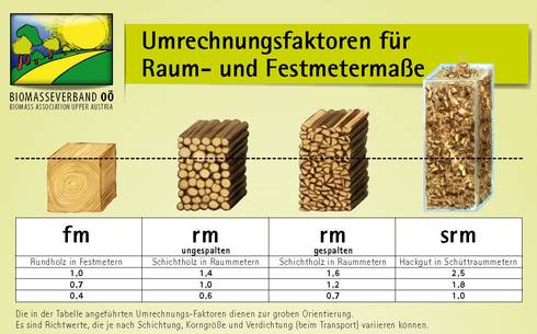 Und finde dort einen Umrechnungsfaktor beider Volumenmaße von 0,6 Rm/Srm.