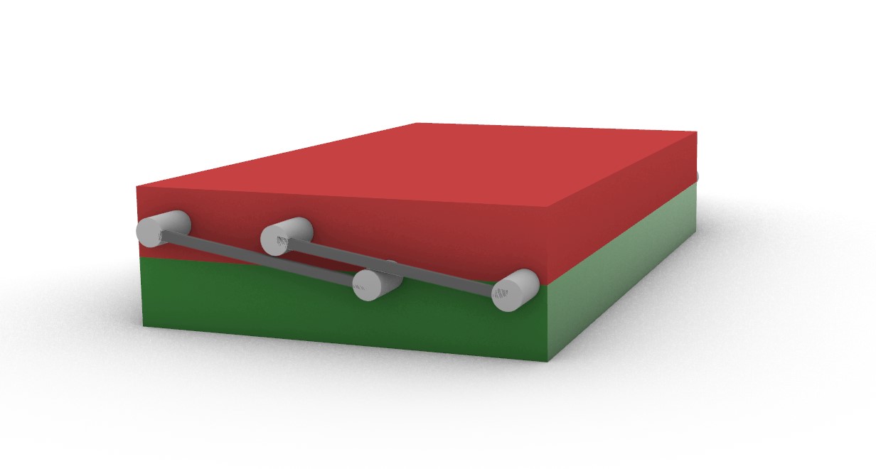 Das Bett wird in 2 gleiche Teile aufgeteilt und im nicht genutzten Zustand liegen beide Teile übereinander (Bild 1). Wird das Bett genutzt, soll der obere Teil nach vorne geklappt werden (Bild 2) und es entsteht eine große Liegefläche (Bild 3). Dazu liegen beidseitig der Bettteile Flachstähle welche mittel Kugellagern am jeweiligen Bettteil bzw. einer Aufnahme befestigt sind. Dies müsste soweit alles funktionieren. nun aber meine Überlegung. Von der Ausgangsstellung (übereinander) das obere Teil zur großen Fläche zu ziehen sollte kein Problem sein, nur wieder zurück. Dazu muss das vordere Teil erst angehoben und dann über den Kipppunkt gebracht werden. Hier würde mir eine Art Federmechanismus vorschweben, nur habe ich keine Ahnung wie.