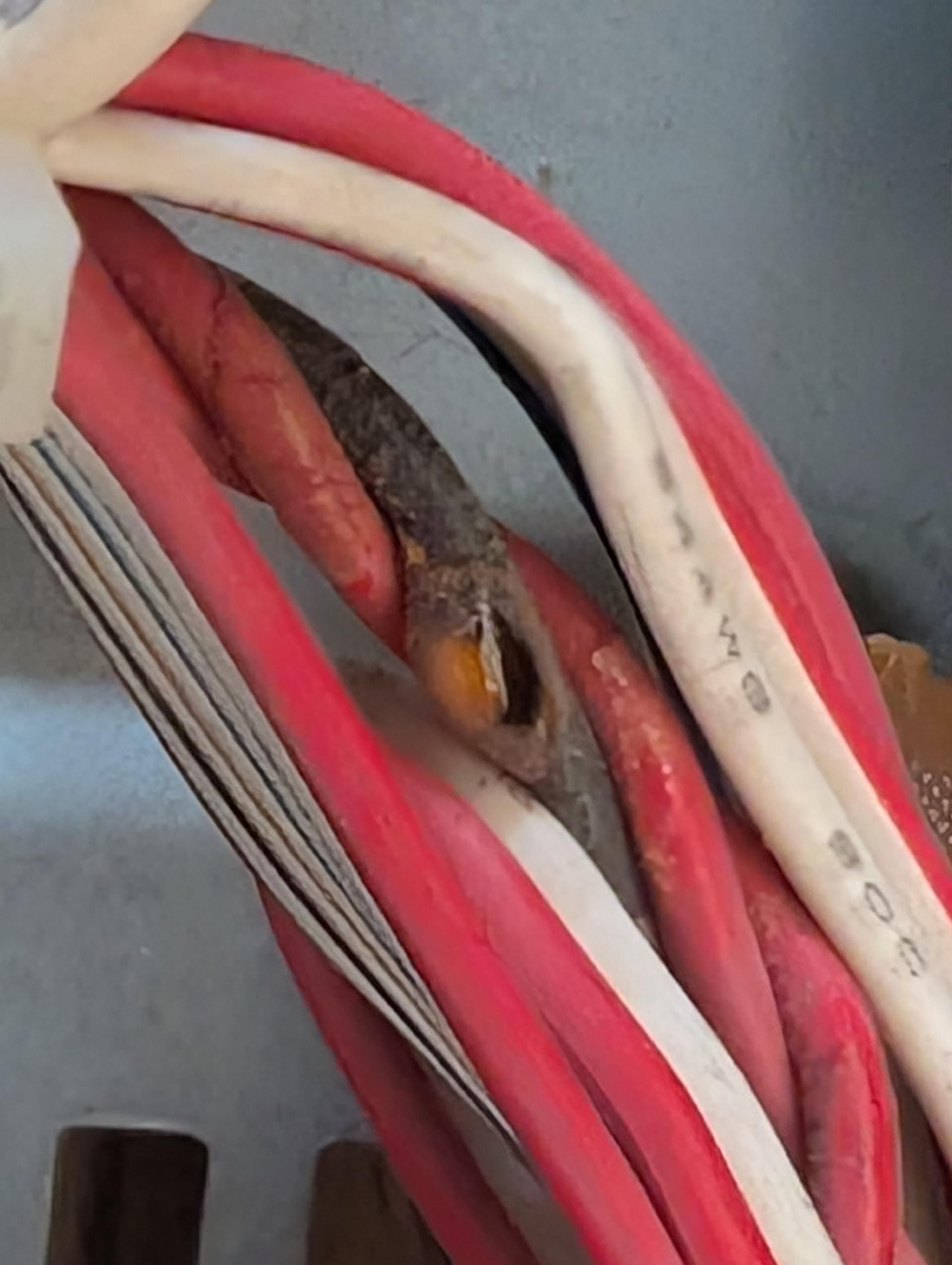 Mit meinem laienhaften Blick ins Innere konnte ich keine lockeren oder gelösten Teile finden. Aber 1 Kabel, das mit dem Boxen-Ausgang verbunden ist, zeigt eine verdächtige Blase. Das sieht wie geschmolzen aus. Das könnte natürlich der entscheidende Hinweis sein. Aber warum schmilzt ein Kabel? Vielleicht finde ich einen Fachmann, der das herausfinden kann.