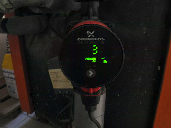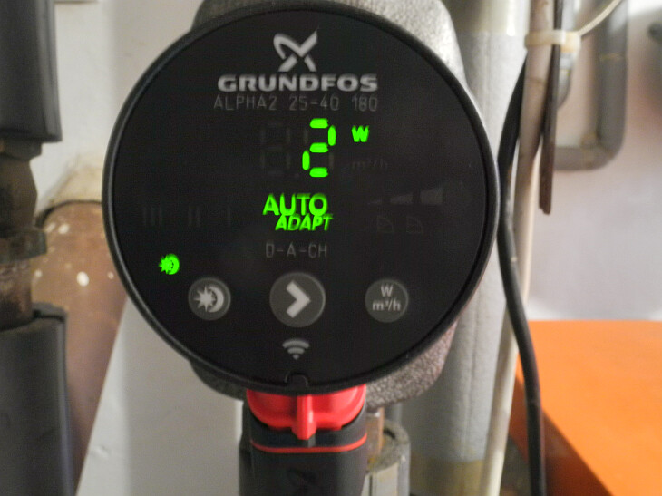 abgebildet ist die Umwälzpumpe fürs Brauchwasser. Ich hab mal das Ohr drangelegt, deutliches Laufgeräusch zu hören.