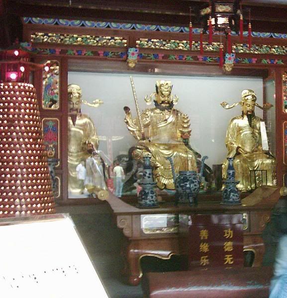 Einzig der daoistische Tempel macht mir Schwierigkeiten. Es handelt sich um den Chenghuangmiao (Stadtgöttertempel) in Shanghai. Dieser ist wie erwähnt daoistisch, allerdings habe ich mir sagen lassen, dass er stark synkretistisch beeinflusst ist- was mich lediglich mehr verwirrt.
