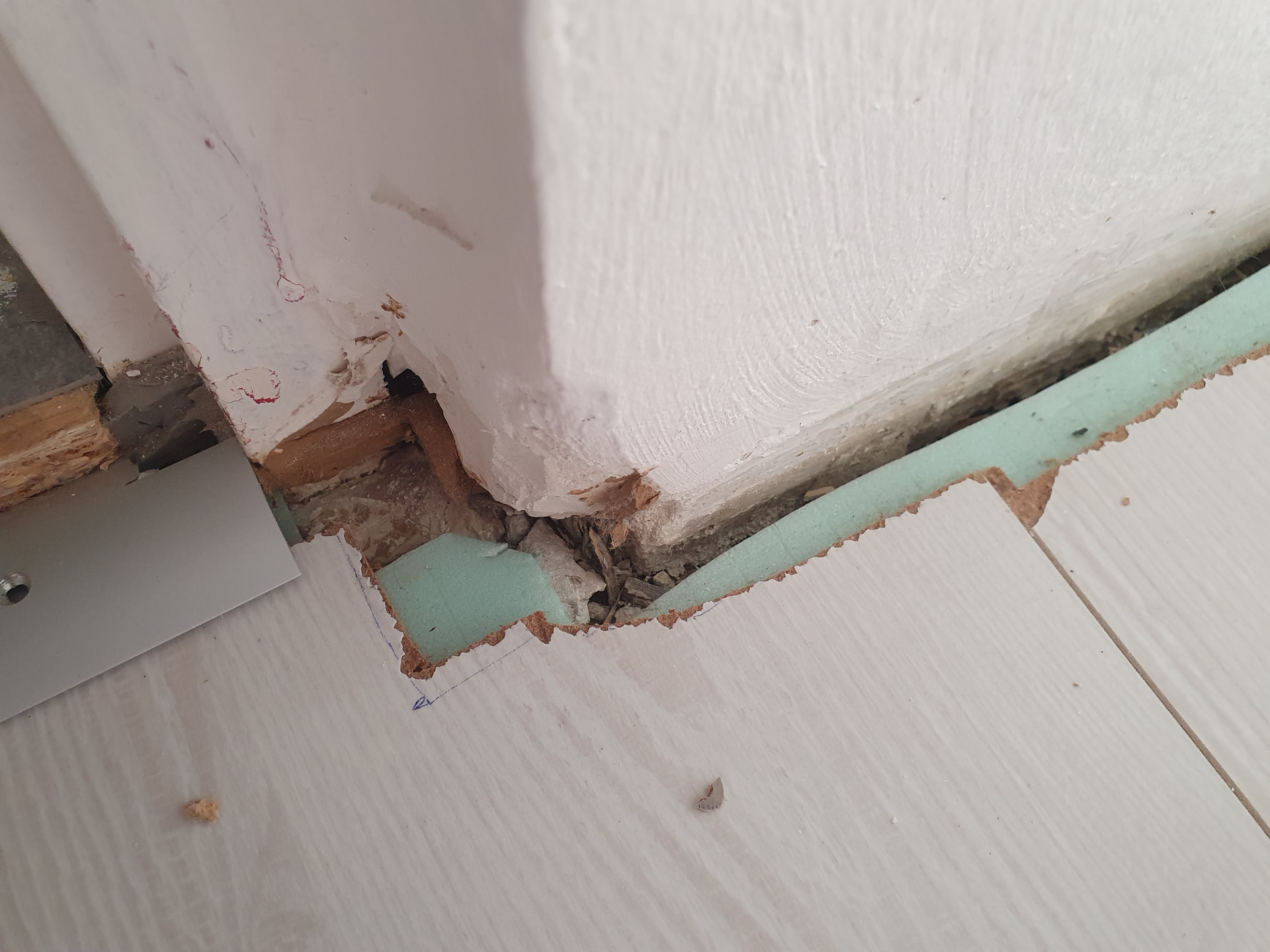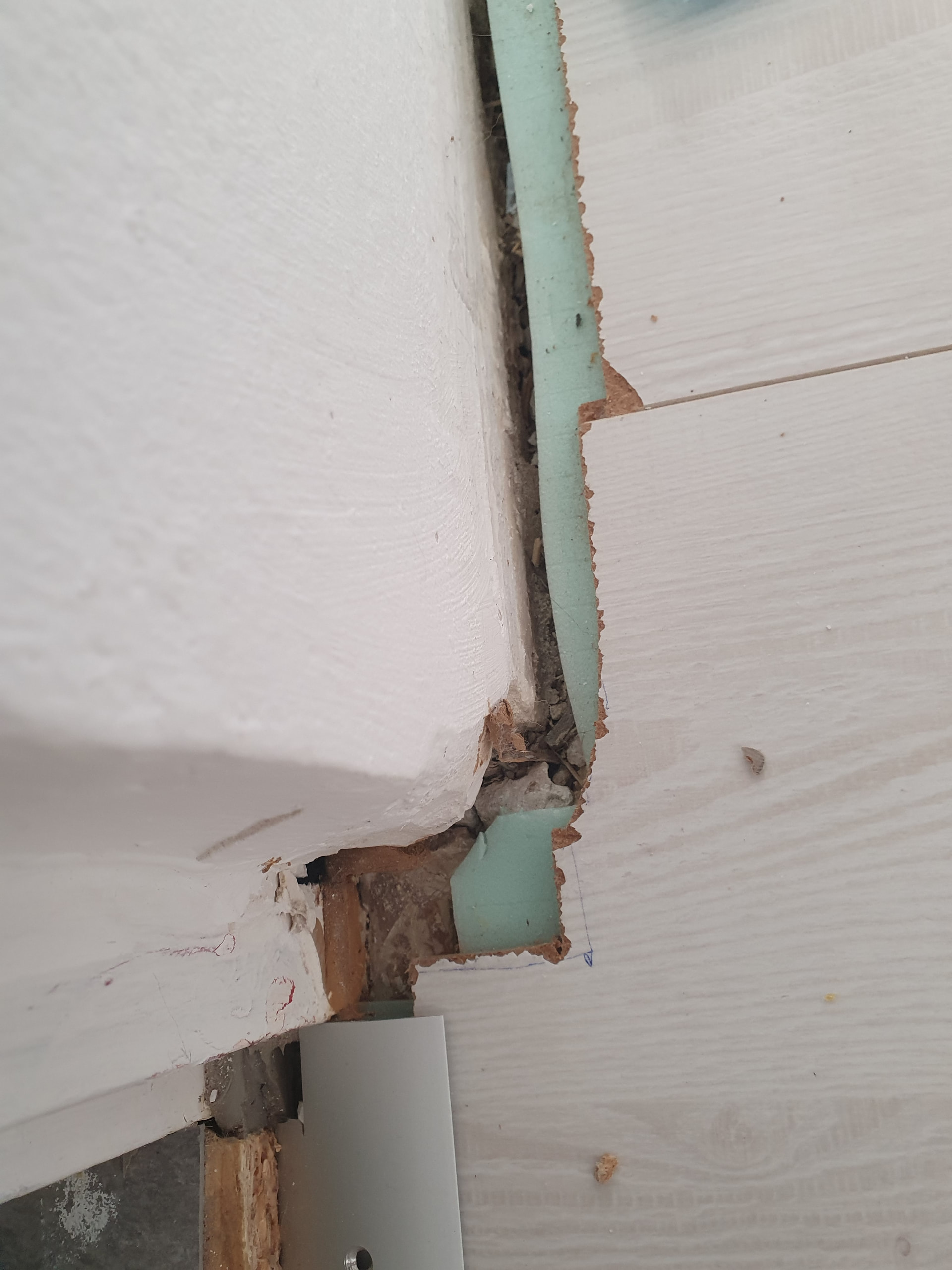 Oha! Was ist da passiert? Laminat mit der Axt geschnitten?