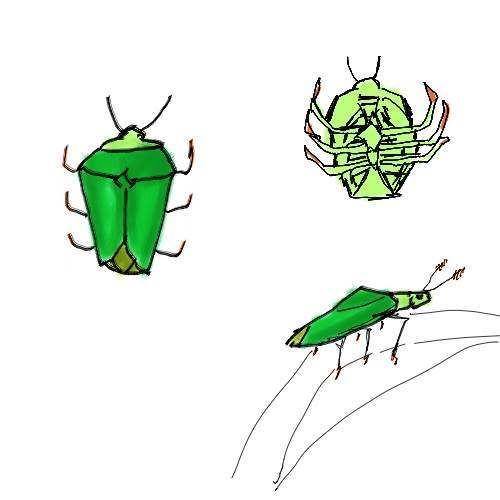 Er lag auf dem Rücken und strampelte, zuerst dachte ich, es wär eine Laus aber dafür war er zu groß. Zecke? Zu grün
