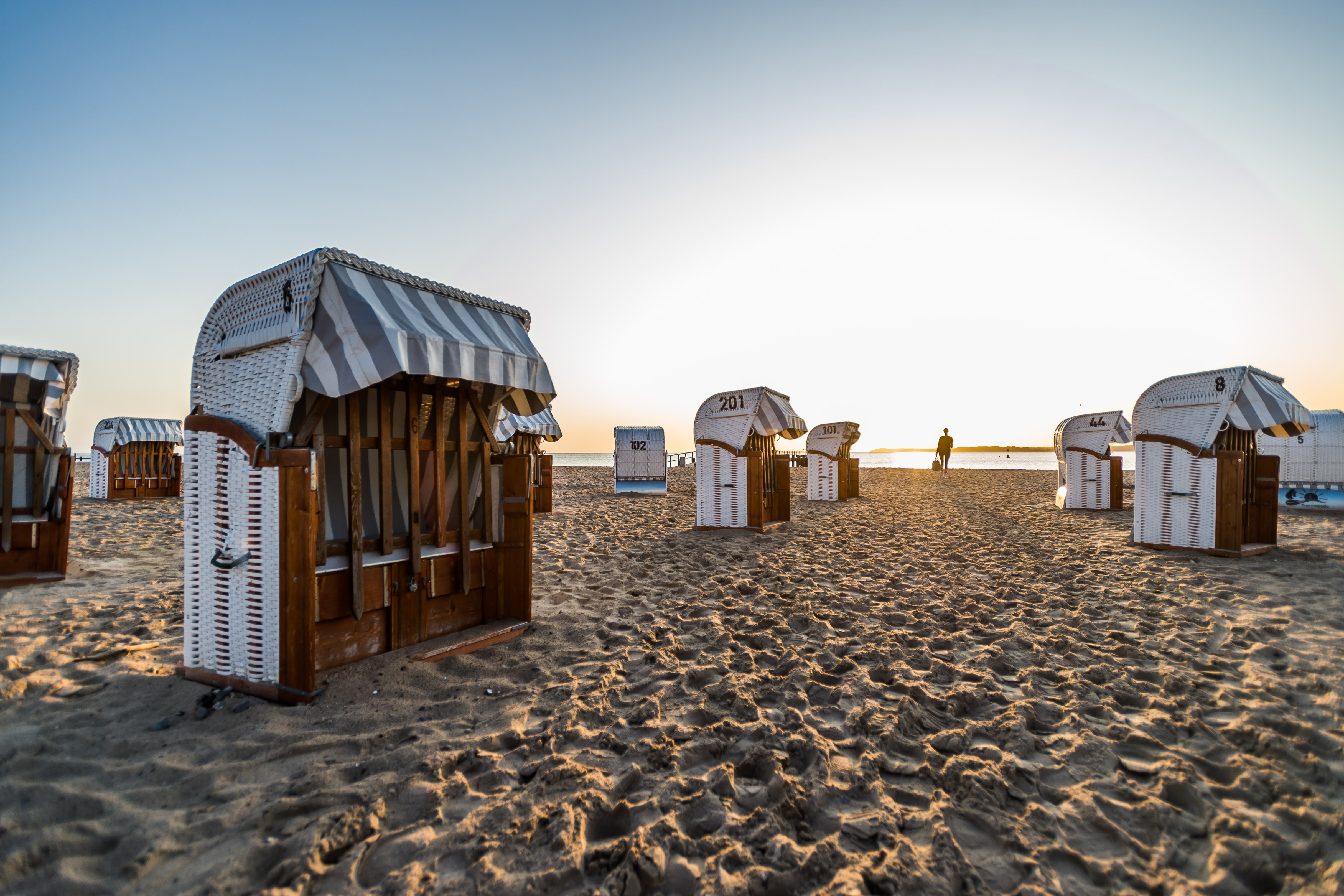 Wenn ein Flughafen in der Nähe sein soll, wäre vielleicht auch noch Rostock bzw die Gegend drum herum auch noch eine Option. Strände mit Strandkörben gibt es da auch.