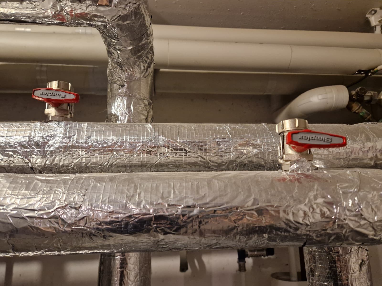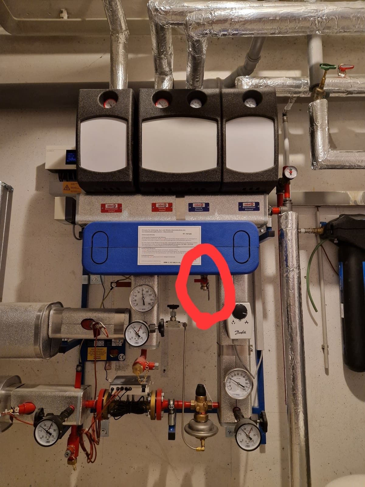 Auf deinem Ursprungspost ist der Verteiler zu sehen, in der Mitte mit Heizung vor und Rücklauf.