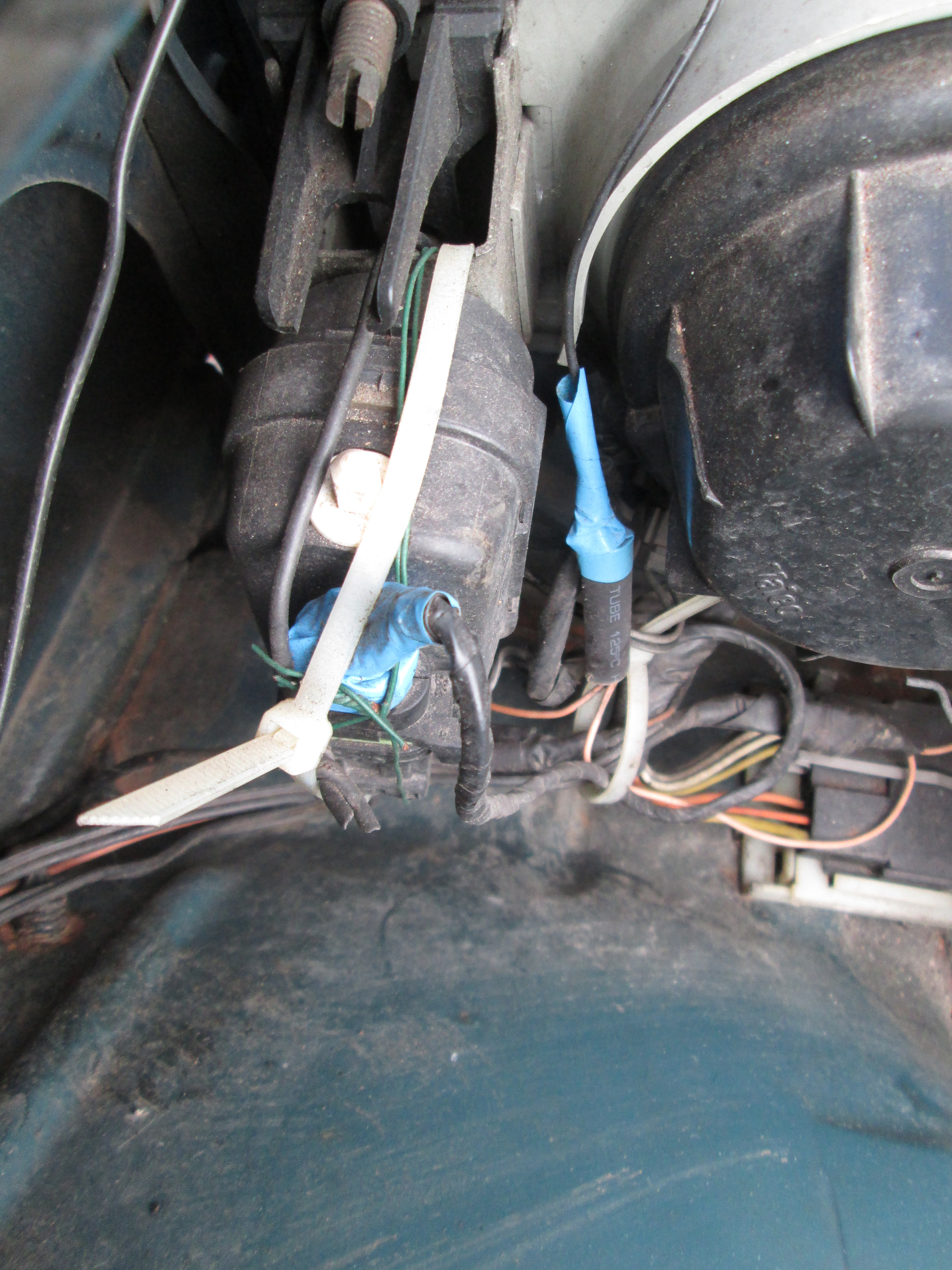 beim Anschließen habe ich die Kabel verlegt und die kleine Motoreinheit an die Scheinwerfer mit den Kabelbindern (sonst ging das irgentwie nicht) befestigt.