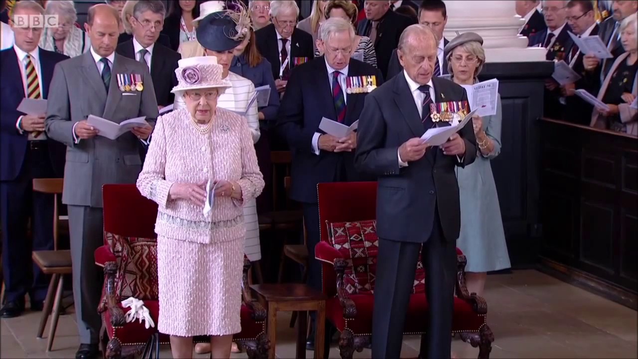 Witzig: die Queen singt mit oder tut wenigstens so.