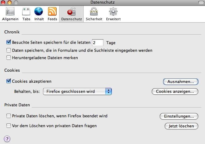 Ich möchte gerne beim Verlassen von Firefox im Prinzip alle Cookies automatisch löschen, ausser von mir definierte Ausnahmen wie z.B. Google, w-w-w, …