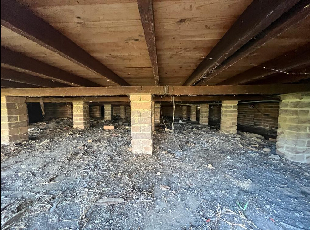 Generell waeren viele aus Deutschland bzgl der Bausubstanz hier ueberrascht (=entsetzt). War ich auch, aber man gewoehnt sich daran. Nur mal so zur groben Erklaerung: unser Haus, wie auch viele andere hier, steht auf Pfeilern. Das Fundament dieser besteht normalerweise aus….naja, vier Steinen die auf der Erde liegen. Kein Witz! Darauf dann wie im Bild unten zu sehen Holzbalken und Bretter.