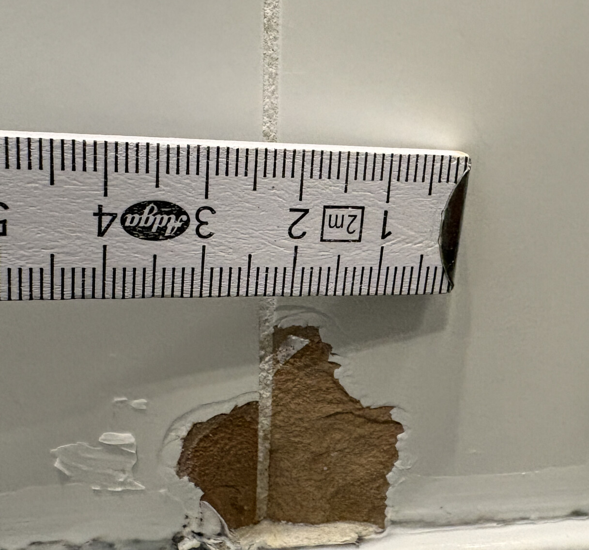Optisch stört mich das weiße Zeug auf Wannenhöhe in dem Ausbruch. Ist das ne provisorische Maßnahme gegen eindringendes Wasser?