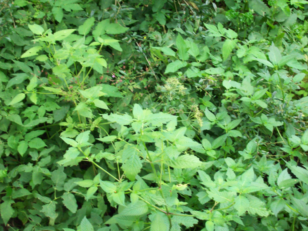 Giersch sehe ich evtl. am linken Bildrand. Und auch die veblühte Doldenblüte in der Mitte könnte Giersch sein.