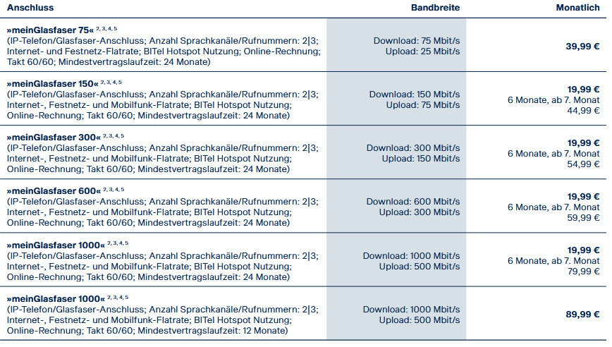 Kostenlos? Bei uns haben alle drei Tarife im 1. Jahr gleich gekostet, deswegen haben viele im 1. Jahr den Tarif mit der schnellsten Geschwindigkeit genommen, aber wenn man nach einem Jahr aus Kostengründen reduzieren wollte, haben sie nochmal die Hand aufgehalten. Es war nicht viel, ich glaube 15 Euro oder so, aber ich fand das trotzdem seltsam.
