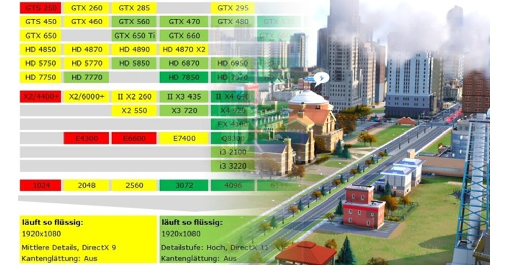 vor kurzem habe ich mir SimCity 2013 zugelegt. Ich möchte das Spiel mit möglichst hoher Grafikqualität spielen, weil es dann einfach am meisten Spaß bringt. Leider funktioniert das mit meinem PC nicht so gut, weshalb ich mich bei google auf die Suche gemacht habe. Folgendes habe ich gefunden:
