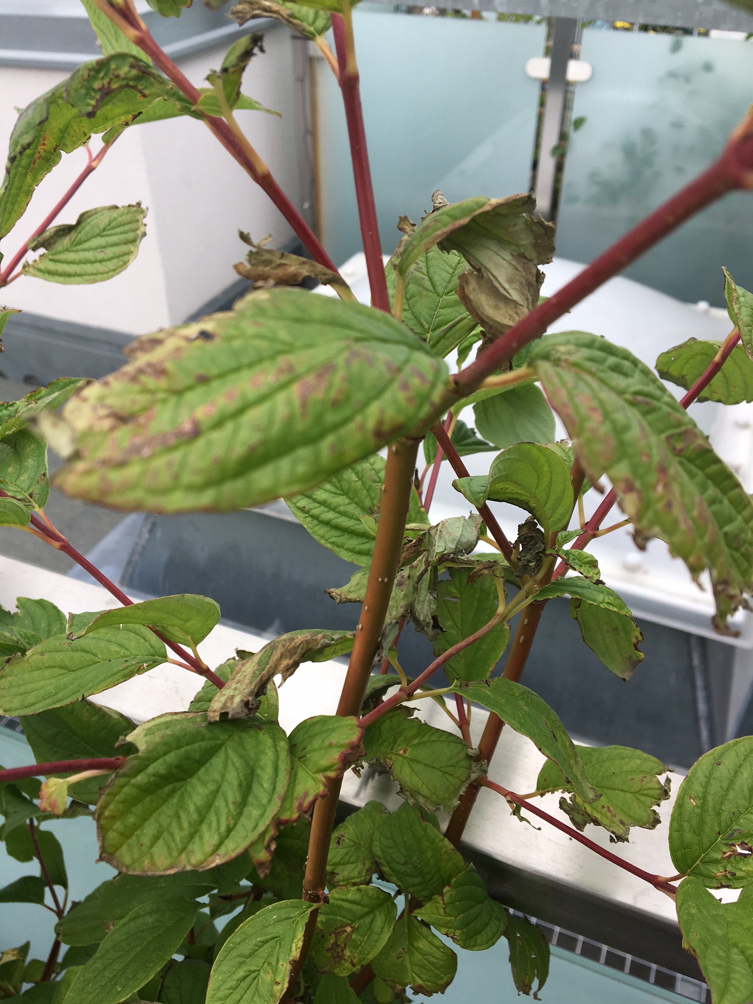 das Schadbild am Hartriegel kenne ich so nicht. Frostschäden (Vermutung von @Udo_Becker) würde ich ebenfalls nicht ausschließen.