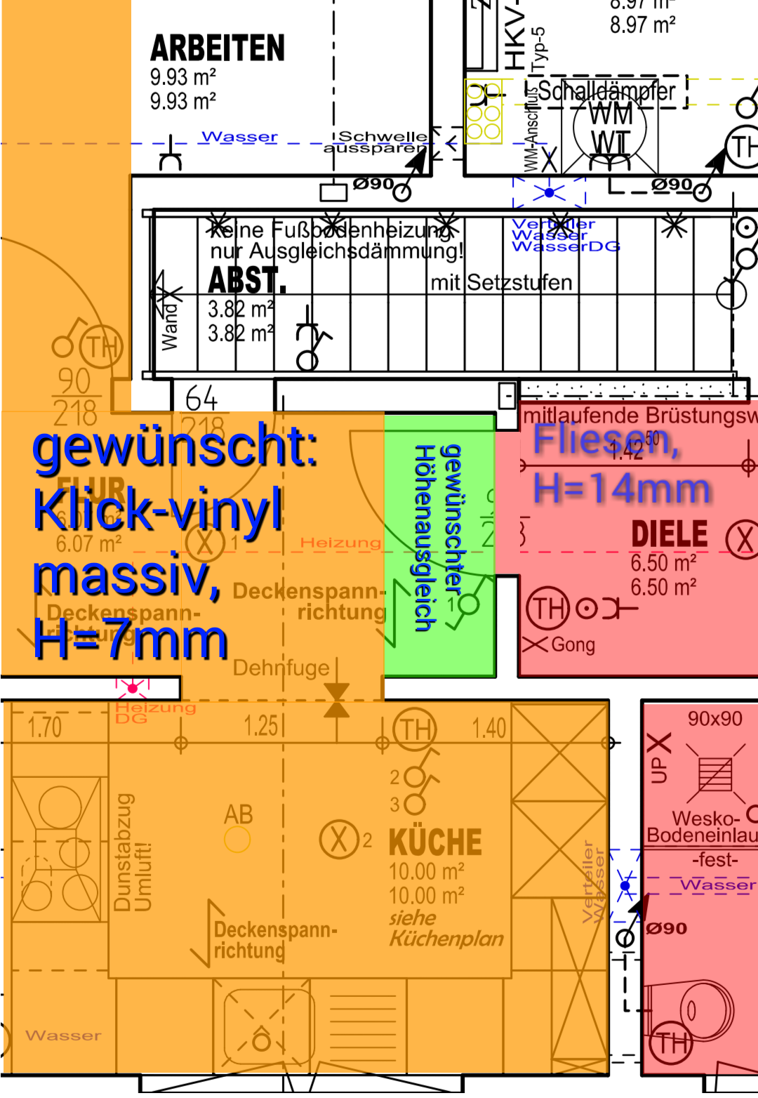 Meine Idee war, den Estrich leicht anzuspachteln, also eine Art Rampe auszubilden. Im Durchgangsbereich wären dazu Ca. 0,7m Platz um die benötigten 7mm anzuspachteln. Macht das der Vinylboden mit? In der Verlegerichtung bin ich noch frei, kann also längs oder quer von diesem Durchgang mit der Rampe weg gehen mit dem Vinylboden!