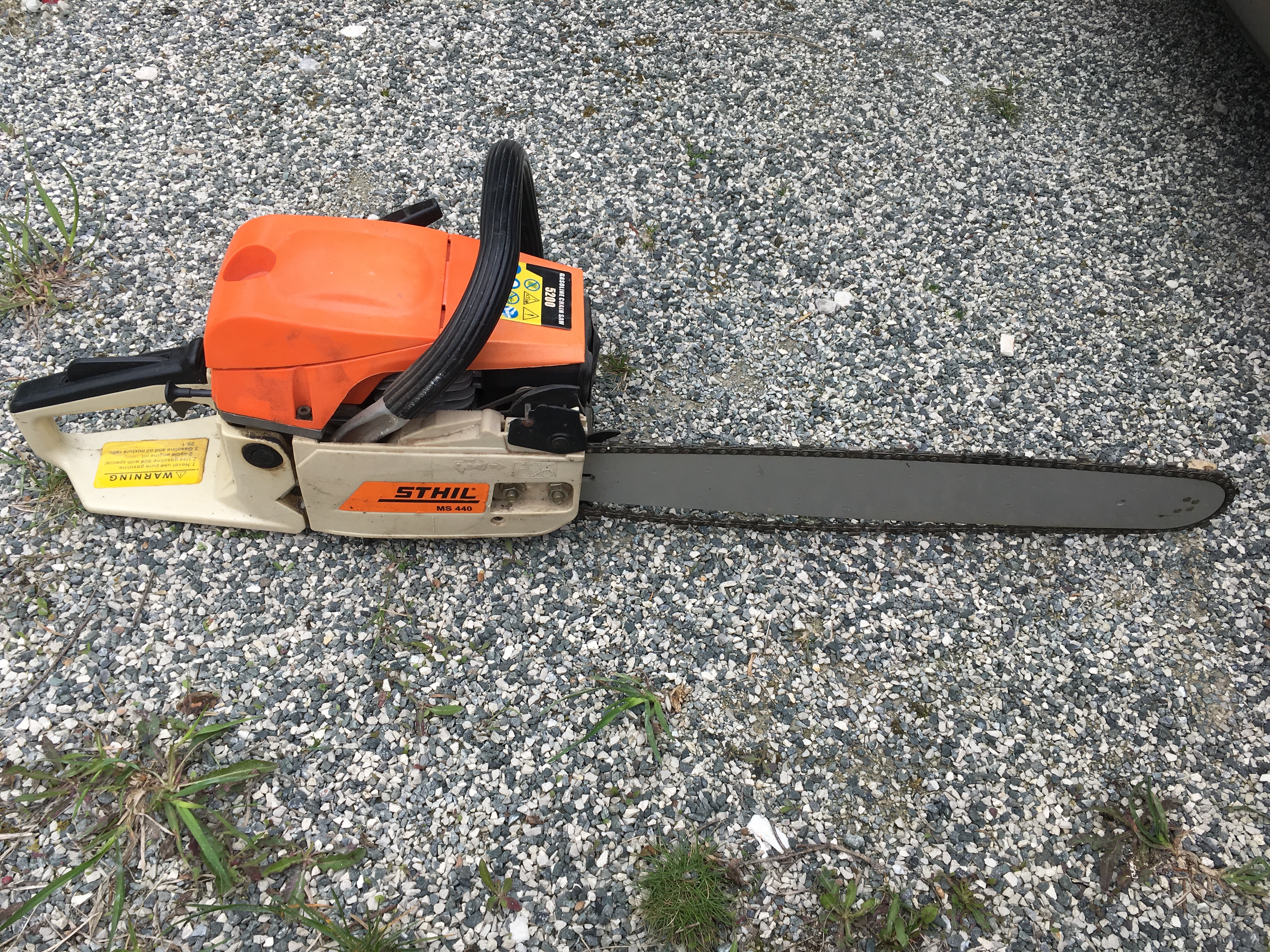 Wir haben uns ein Haus gekauft und sind jetzt vor kurzem in der Garage auf eine Stihl MS 440 Kettensäge gestoßen, zumindest glaubte ich dass es eine ist, bis mir ein bekannter gesagt hat, dass das wie eine Fälschung aussieht.