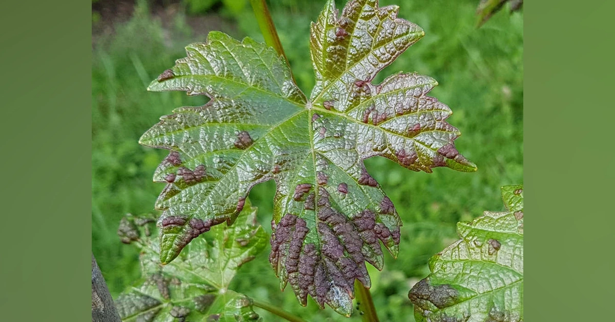 Die Rebenpockenmilbe ist so winzig, dass man sie allenfalls mit der Lupe erkennt, aber der Filzbelag, dessen Bildung sie zu ihrem eigenen Schutz provoziert, ist ein klares Merkmal.