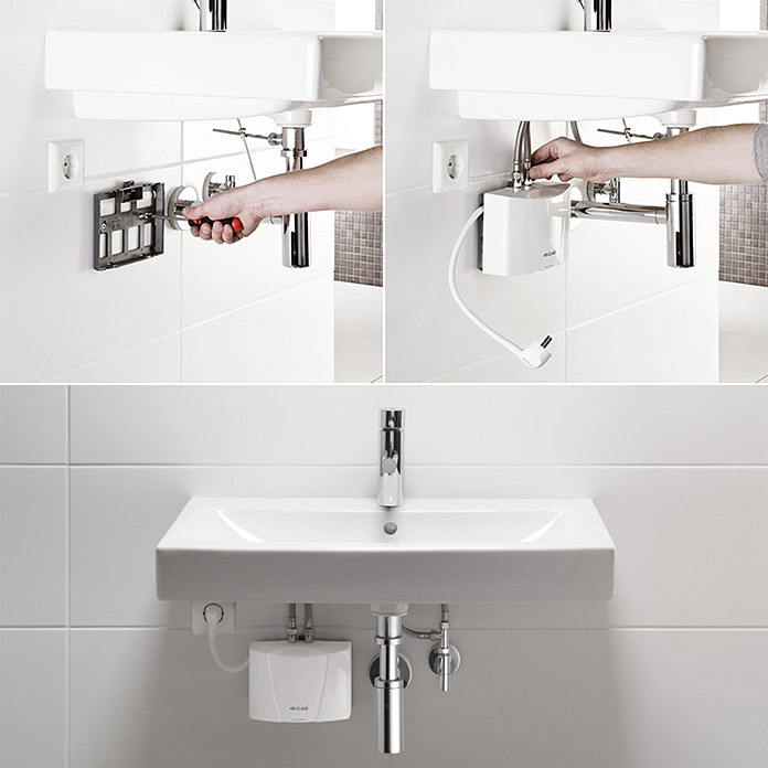 Klein ( oder Kleinst-Durchlauferhitzer (drucklos) können nur ein Waschbecken versorgen, sie haben einen sehr geringen Wasserdurchsatz.