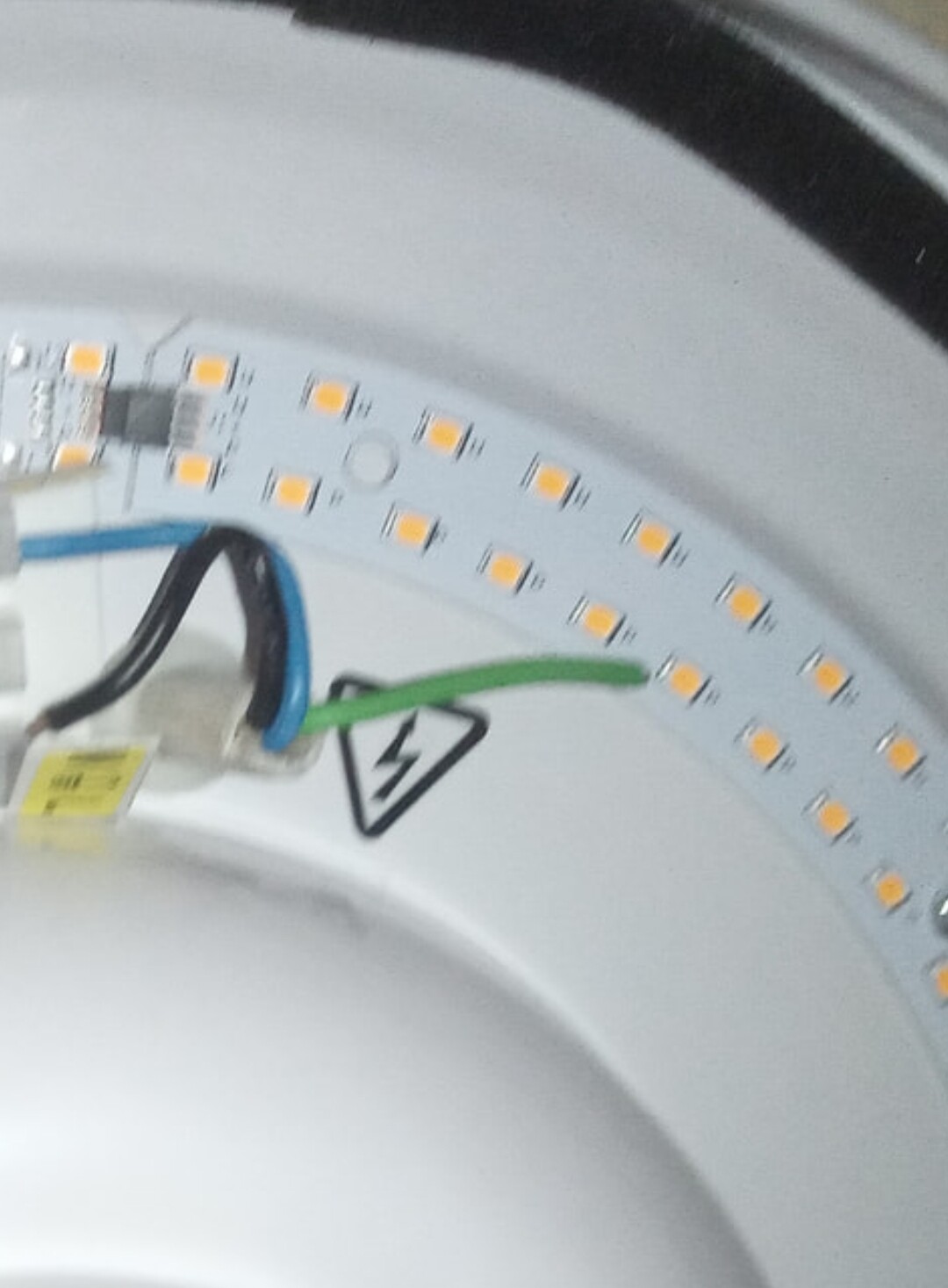 P.s. das hat man wohl davon, wenn man Billiglampen beim Discounter kauft.hab jetzt die Lampe von der Decke geholt, und ja, der lose grüne Draht gibt mir auch zu denken. Die zwei gelbgrünen sind schon angelötet.