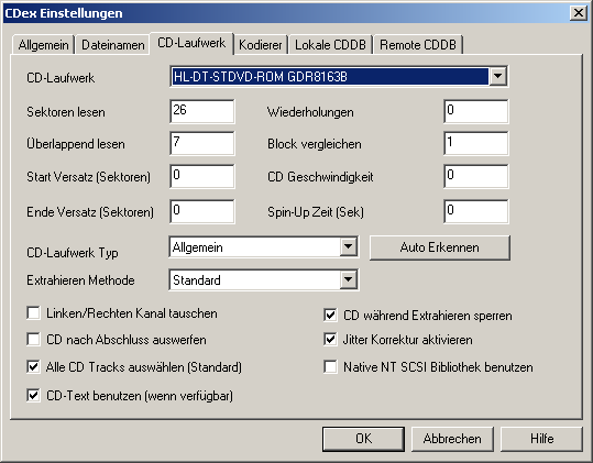 ich habe kürzlich unter Windows XP (SCSI CD Brenner von Yamaha) mit CDex 1.51 einige meiner Hörspiel CDs umgewandelt. Anschließend musste ich feststellen, dass einige Dateien, obwohl mehrere MB groß, leer sind. d.h. beim Abspielen kommt kein Ton raus. Weiterhin gibt es diverse Dateien, die Lücken aufweisen. Im einem Audio Editor sind Lücken zu sehen d.h. genau bei der flachen Linie fält der Ton komplett aus. Kennt Jemand dieses Phänomen? Welche Abhilfe gibt es?