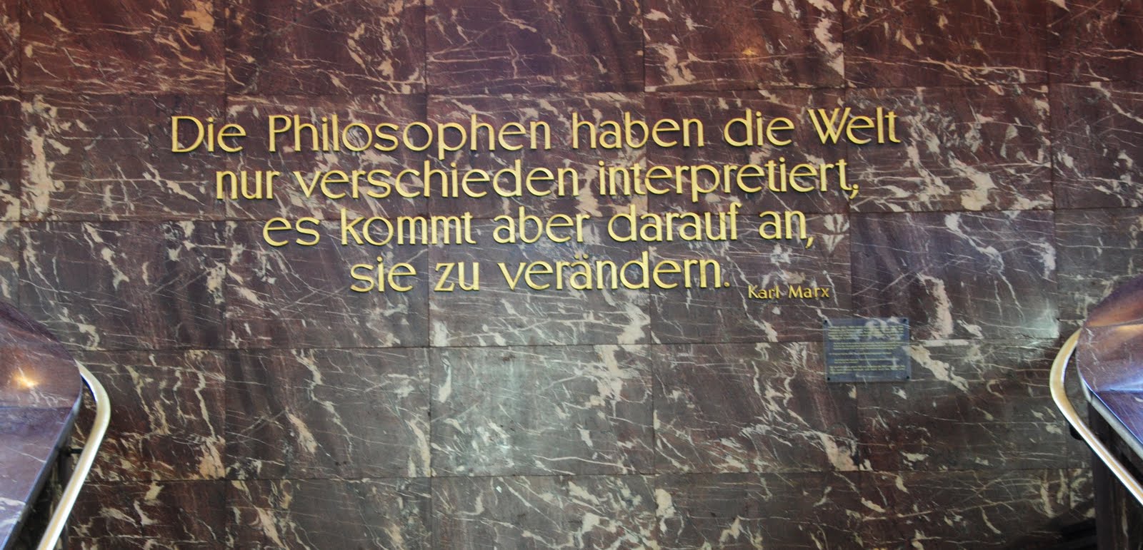 im Foyer der Humboldt-Universität steht ja der bekannte Feuerbachthese „Die Philosophen …“ an der Wand. Davon gibt es ja im Netz Bilder genug. Ich suche allerdings eine Abbildung der rechts darunter angebrachten Denkmalschutzplakette. Gibt es davon eine Abbildung im Netz oder zumindest den Text, der auf dieser Denkmalschutzplakette steht?