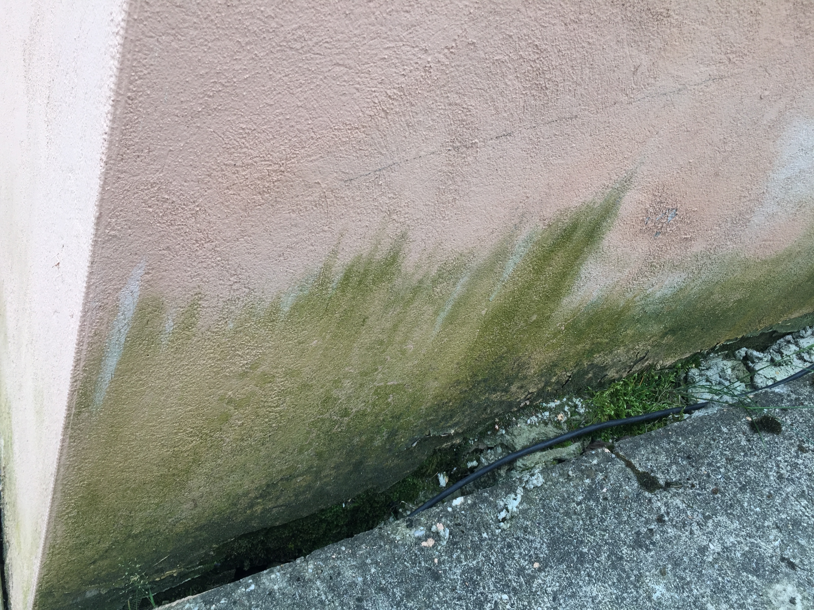 naja, das bekommst du aber auch nicht in den Griff. Ich meine damit, das Wasser von der Mauer tropft und zu nah an der Mauer landet. Der Tropfen zerplatzt dann und befeuchtet schön die Mauer. Da wo es nass ist, wird Moos oder Algen immer wieder wachsen.