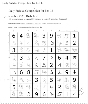 Asche auf mein Haupt, ich bitte um Vergebung: Bis gestern wusste ich noch nicht, wie man ein Rätsel mit dem Datum besorgen kann, habe meinen ersten Druck versaut, deshalb das Rätsel abgeschrieben und prompt einen Fehler eingebaut. Ich bitte um Vergebung. Die Frage, ob ein Sudoku mehrdeutig sein kann, bleibt also weiterhin offen.