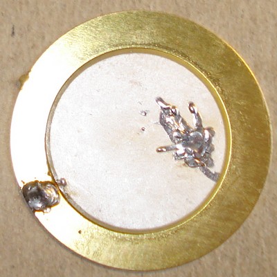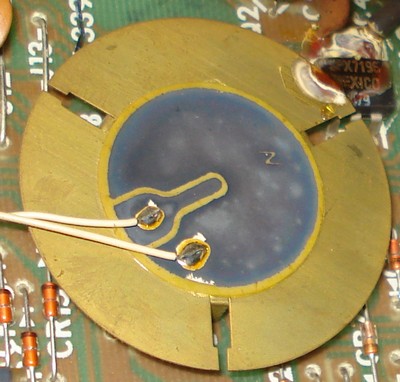 Hier ist unbedingt ein baugleicher Piezogeber nötig! Die kleine Elektrode bei 8 Uhr dürefte eine Steuerfunktion haben, bei 7 Uhr ist die eine Anschlussleitung, das Trägerblech ist die zweite. Vermutlich liegen an Trägerblech und 7 Uhr Anschluss Vorspannung an, die durch die kleine Elektrode dann zum Signal ergänzt werden.