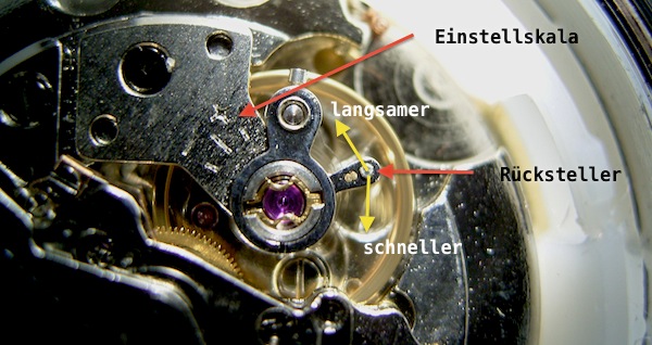 So müßte z.B. die Gangverlangsamung durch Ausdehnung der Unruhemasse durch exakt definierte Veränderung der Federkonstante erzeugt werden.