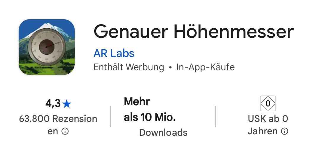 Anders sah das bei meinen Versuchen vor einigen Jahren aus. Ich bin leider gar nicht auf die Idee gekommen dafür eine reine Barometer APP (oder eine Wettermeß-APP zu suchen da das Barometer ja meistens innerhalb einer etwas Umfangreichen Wetter APP ist zu suchen) sondern habe die Höhenmessung innerhalb der Fahrrad-APP gemacht. Sinn der Höhenmessung beim Fahrradcomputer ist ja das man nachträglich sich iden Streckenverlauf mit gleichzeitigem dazugehörigen Höhenverlauf anzeigen lassen kann und die Höhe wird da wohl auch mit GPS ermittelt (und nicht nur die x/y-Koordinaten welche man für die Punkte zur grafischen Darstellung auf der Karte braucht). Eigentlich wollte ich damals gar keine Höhenmessung mit dem Fahrrad machen sondern es ging mir nur um die Darstellung des Streckenverlaufs sah dann aber überraschenderweise das immer gleichzeitig die Höhe angegeben wird, Diese Sprang aber bei der Fahrradtour immer in ca. 10-Meter Schritten (also 37,7m, 23.8m, 31,2m…das waren so etwa die Sprünge in der Höhenermittlung zwischen den einzelnen Meßpunkten (das Meßintervall auf der Fahrradtour lag bei einigen Sekunden (also einem Zeitraum in dem es kaum möglich ist mehr als einen Höhenmeter hinzuzugewinnen bzw. abzugeben)) . Die Änderung der Höhe wiurde hier anscheinend auch per GPS errechnet und nicht nur die UTM Koordnaten (also x/y) . Die Sprünge im 10Meter-Bocksprüngen (statt eine genauere über BarometerSmartphonesensor) sind schon recht wild. Am vorteilhaftesten wäre natürlich man würde die Höhe zum jeweilgen UTM-Aufenthaltsort direkt aus den Höhenlinien der zugrundeliegende Internet-Landkarten (googlemaps, OSM und Konsorten) beziehen. Aber es lliegt ja nicht einmal bei den Behörden ein brauchbares Höhennetz vor. Das genauste Höhenmeßverfahren für Laien (die eben keine Hochwertigen GPS Geräte wie diecVermessungsämter sie besitzen und die auch Höhenmessungen im Zentimeterbereich bewerkstelligeb) scheint also noch das Smartphonebarometer zu sein was Höhenänderung betrifft. Meiner Einschätzung nach wäre Barometer etwa 10-fach genauer wie Smartphone-GPS.. es gibt natürlich bei Barometer auch Störgrößen z. B. eine Luftbewegung insbesondere bei Fahrtbewegubg ums Handy herum (Luftwechseldruck).