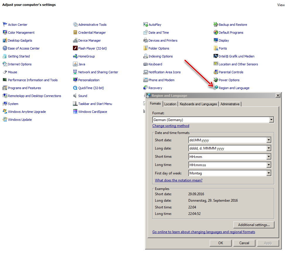 Systemsteuerung ist englischsprachig. Wie stelle ich auf „deutsch“ um?