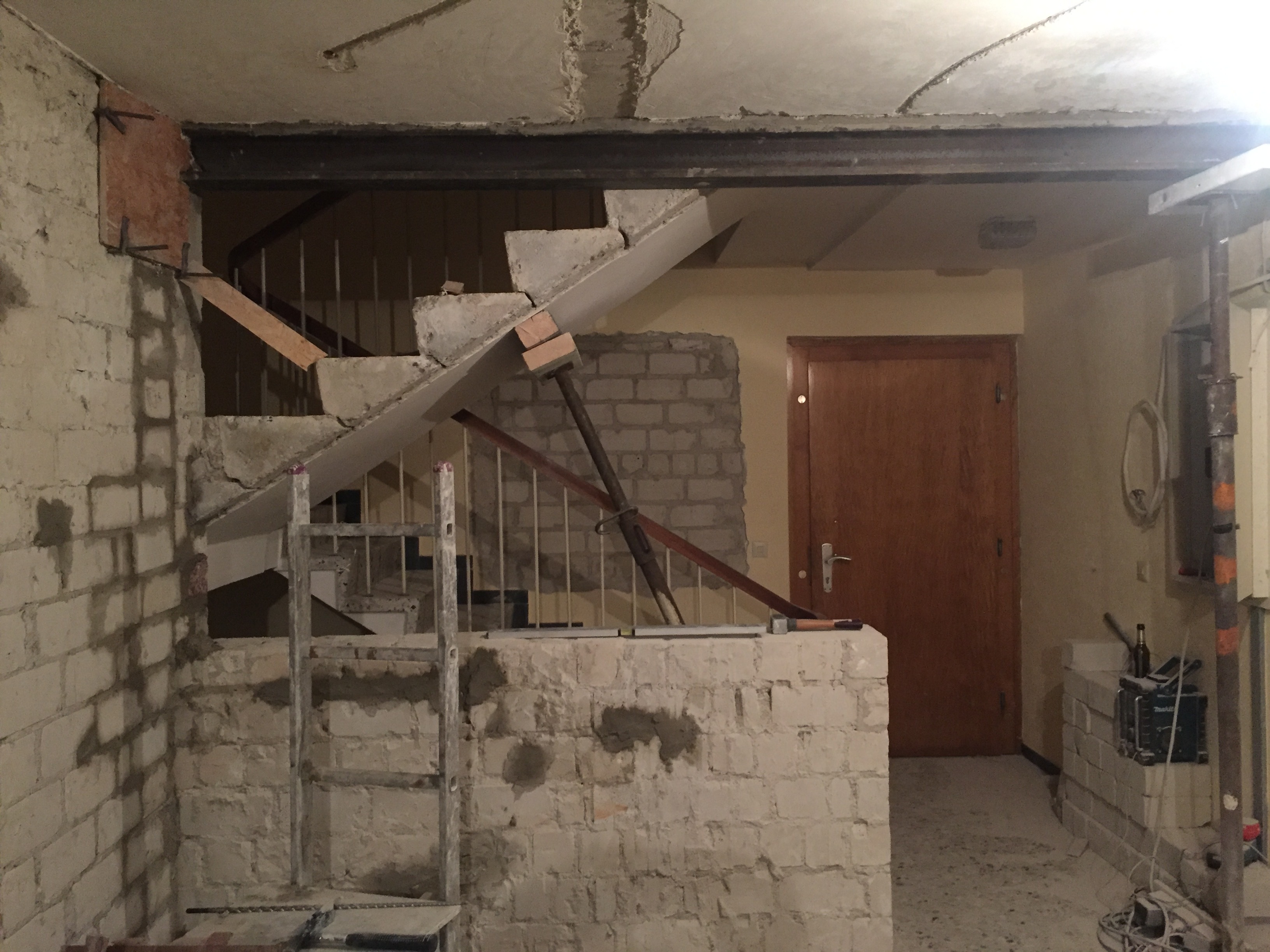 Hallo Paran, ja die Treppe war seitlich mit einem Stein und der Wand. Also die Wand die du auf dem Foto siehst haben wir im oberen Teil abgenommen. Sollte halt offen sein. Die Wand ist/war 24cm breit. Das sind immer 2x11,5er Kalksandsteine. Also jede Stufe war 11,5cm in der Wand. Wenn Sie selbsttragend wäre müsste sie das ja ab können. Da wir nun einen Riss entdeckt haben sind wir uns nicht mehr sicher.