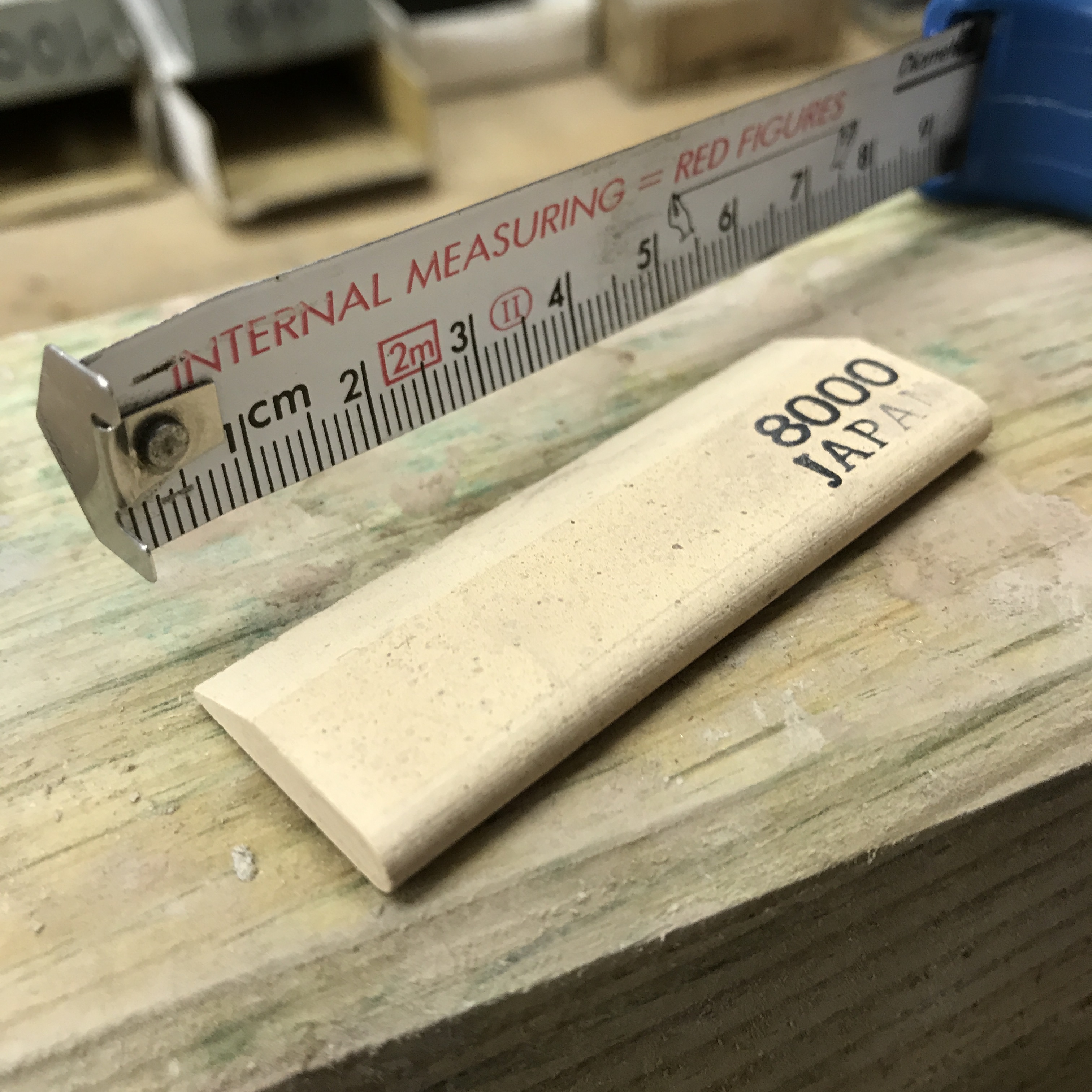 Danke für den Link, aber (abgesehen davon, dass der Shop nicht gerade günstig ist) von solchen Natursteinen habe ich noch eine ganze Kiste voll, aber ich kann mich daran nicht erkennen, wie grob oder fein die sind. Sie nutzen mir also nichts, wenn ich mit grob anfangen und feiner werden will. Der Stein auf meinem Foto ist auch kein Naturstein, sondern ein gegossenes Schleifmittel. Es ist auch bei weitem nicht so teuer gewesen wie ein Naturstein. Aber für meine Art und Weise, die Kling zu schleifen / polieren, einfach perfekt: Ich kann den Stein immer wieder auf einem Abrichtstein schnell plan schleifen und erhalte eine vollkommen gerade Schneidkante. Mit einem großen Steinklotz ginge das nicht. 5 cm x 1,5 cm ist fast schon zu groß, so dass ich den Stein sogar noch durchbreche.