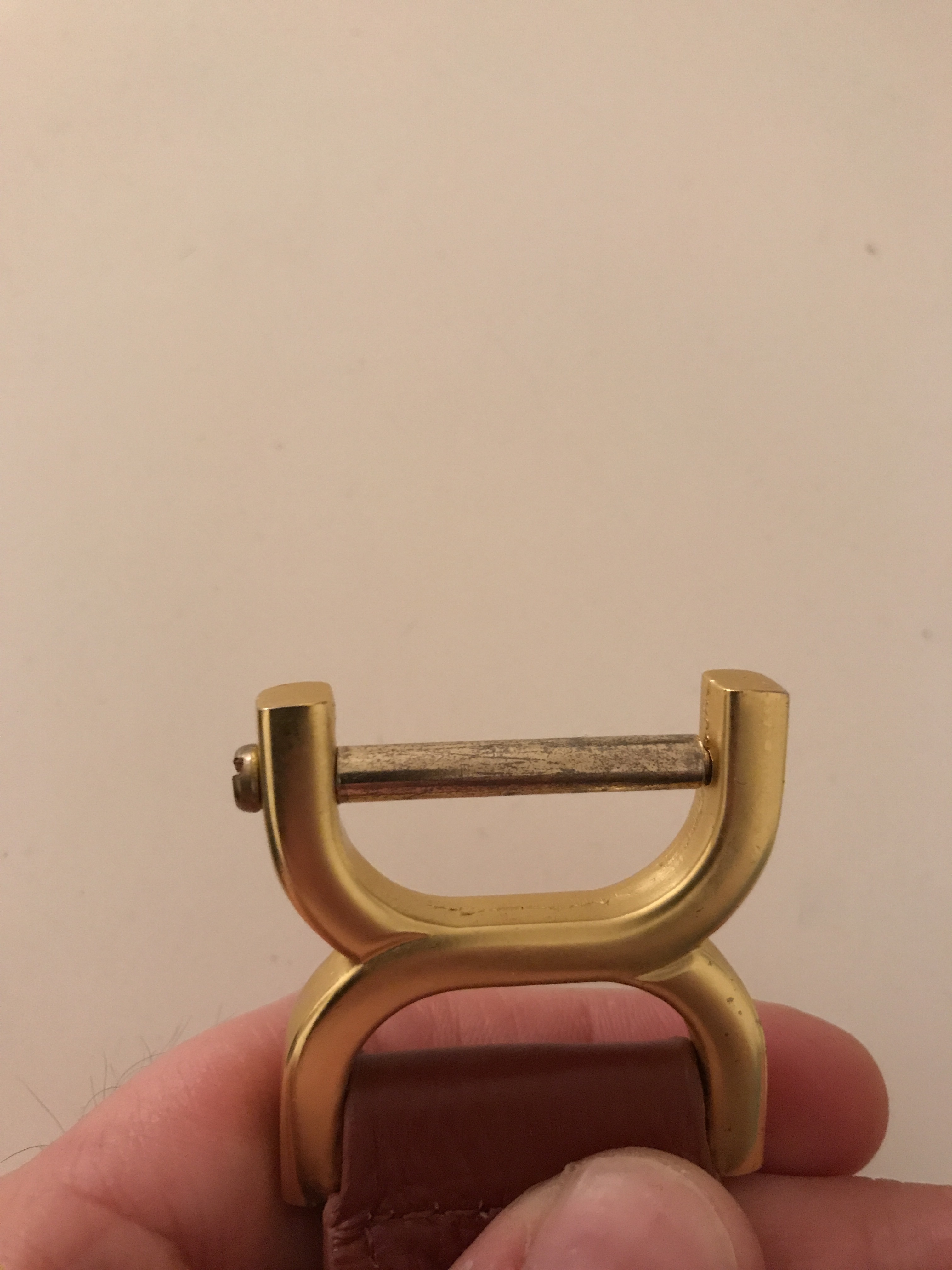 Laesst sich passend in der Laenge kaufen oder kuerzer saegen oder passend herstellen. Eisen oder Messing egal. Der Gewindedurchmesser muss zu den seitlichen Durchmessern in der Schnalle passen, idealerweise.