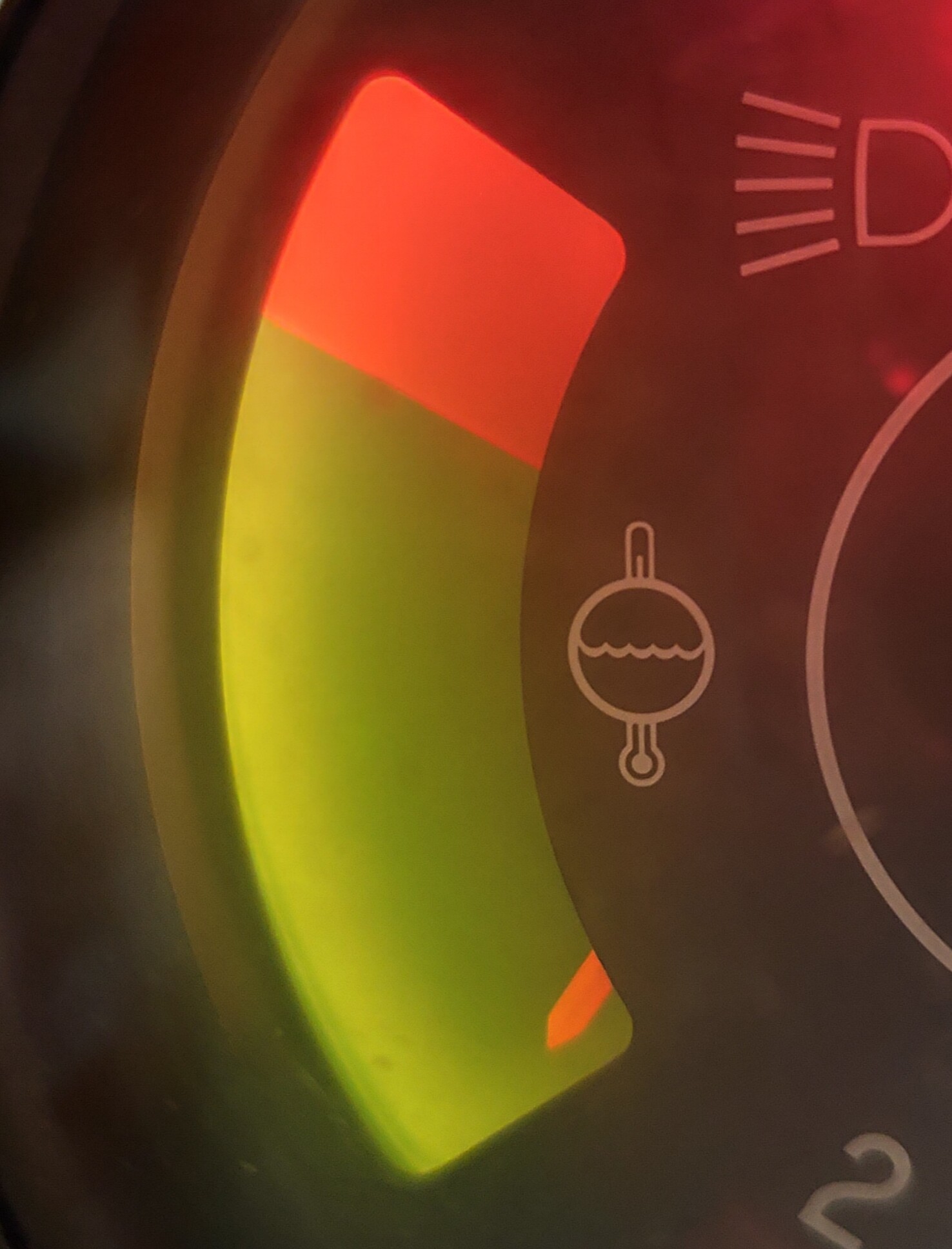 das Symbol neben der Skala, vor dem Thermometer, ist doch eindeutig ein Wassertank, wenn das keine Wellen sind, dann fresse ich einen Besen. Gut versteckt, muss man mit der Lupe schauen, grinst der weiße Hai (noch auf Sehrohrtiefe). Fehlt bloß noch der Bademeister mit dem Rettungsring.