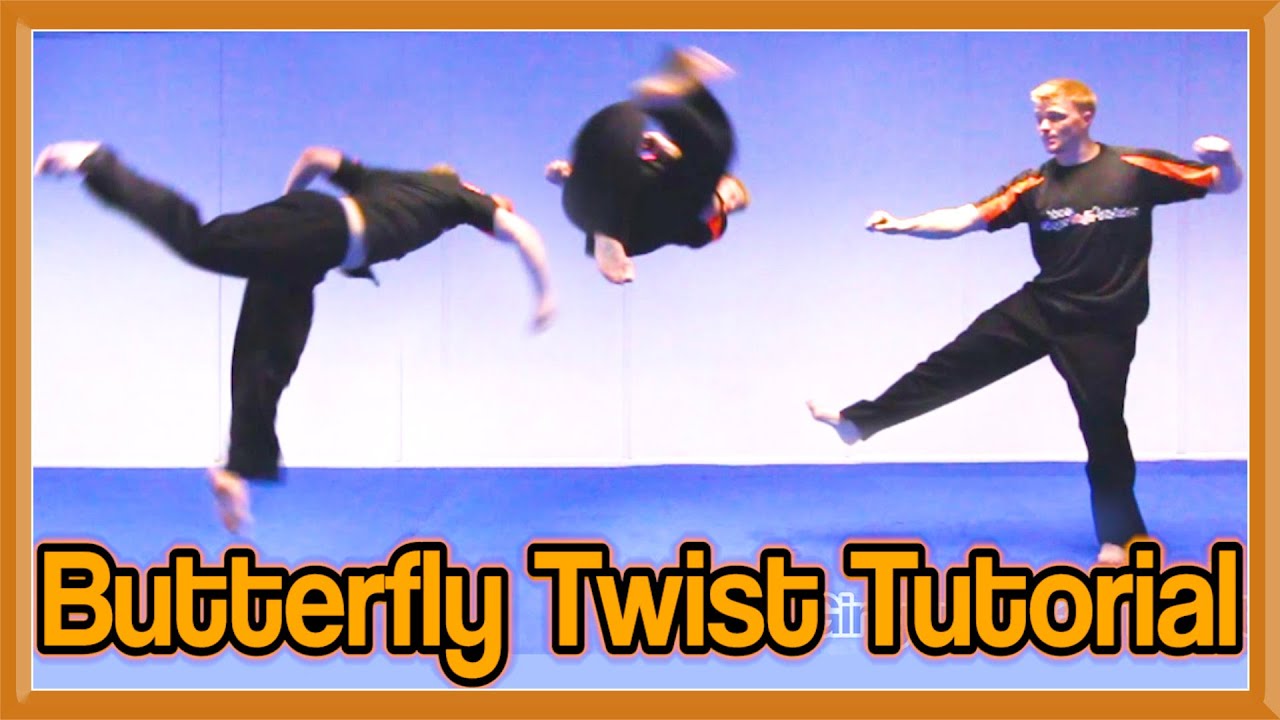 Beim Butterfly Twist siehst du, dass der ganze Bewegungsablauf erst mal auf einer Mattenfläche eingeübt wird, Erst wenn du sicher bist, kannst du auf der Strasse / hartem Grund springen.