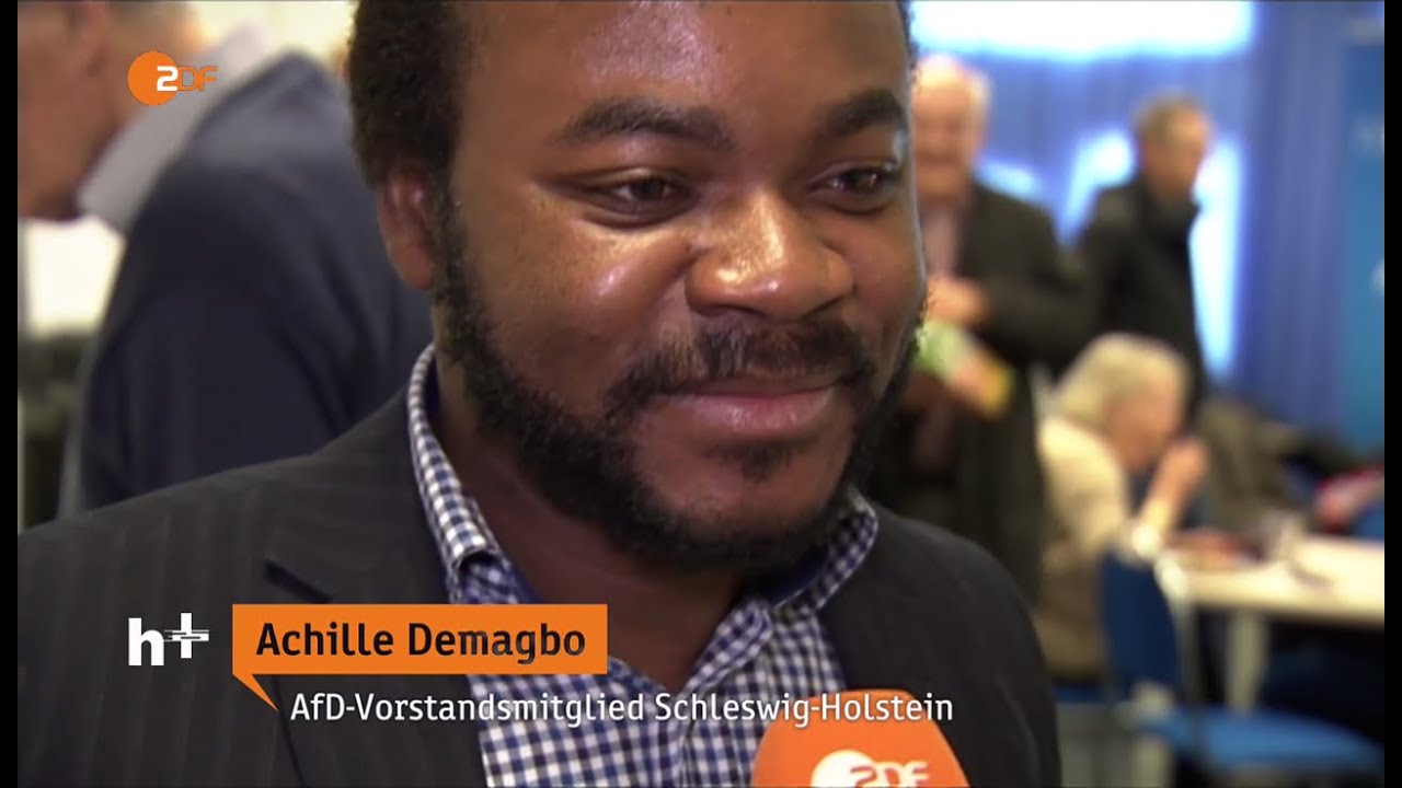 Der Mann ist aber gar kein Nazi, sondern Achille Demagbo, ein aus dem westafrikanischen Benin stammender Sprachwissenschaftler und Konferenzdolmetscher, der zu den Gründungsmitgliedern der AfD in Kiel gehört.