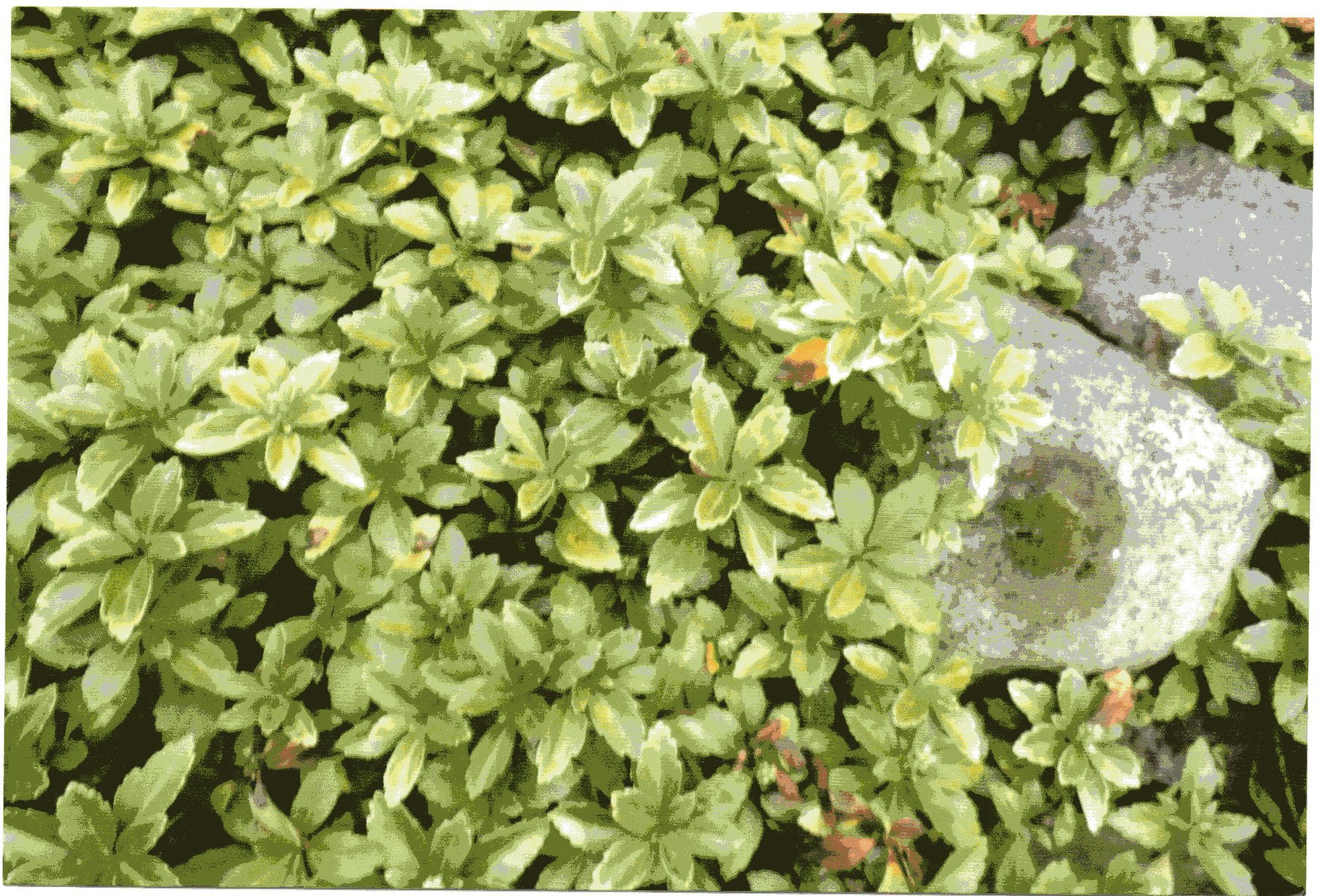Das sieht ganz nach „Dickmännchen“ (Pachysandra) aus! Ein sehr dankbarer, wuchsfreudiger Bodendecker, vor allem für Schatten.