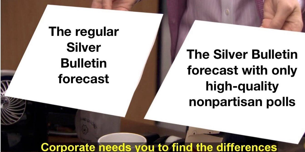 Harris is ahead by 3.0 points nationally in this simple average. But when you look at only Republican-aligned firms, she’s up by only 2.0 points. Removing those polls from the average brings Harris up to a 3.4 point national lead. These aren’t huge differences, but they’re not nothing.