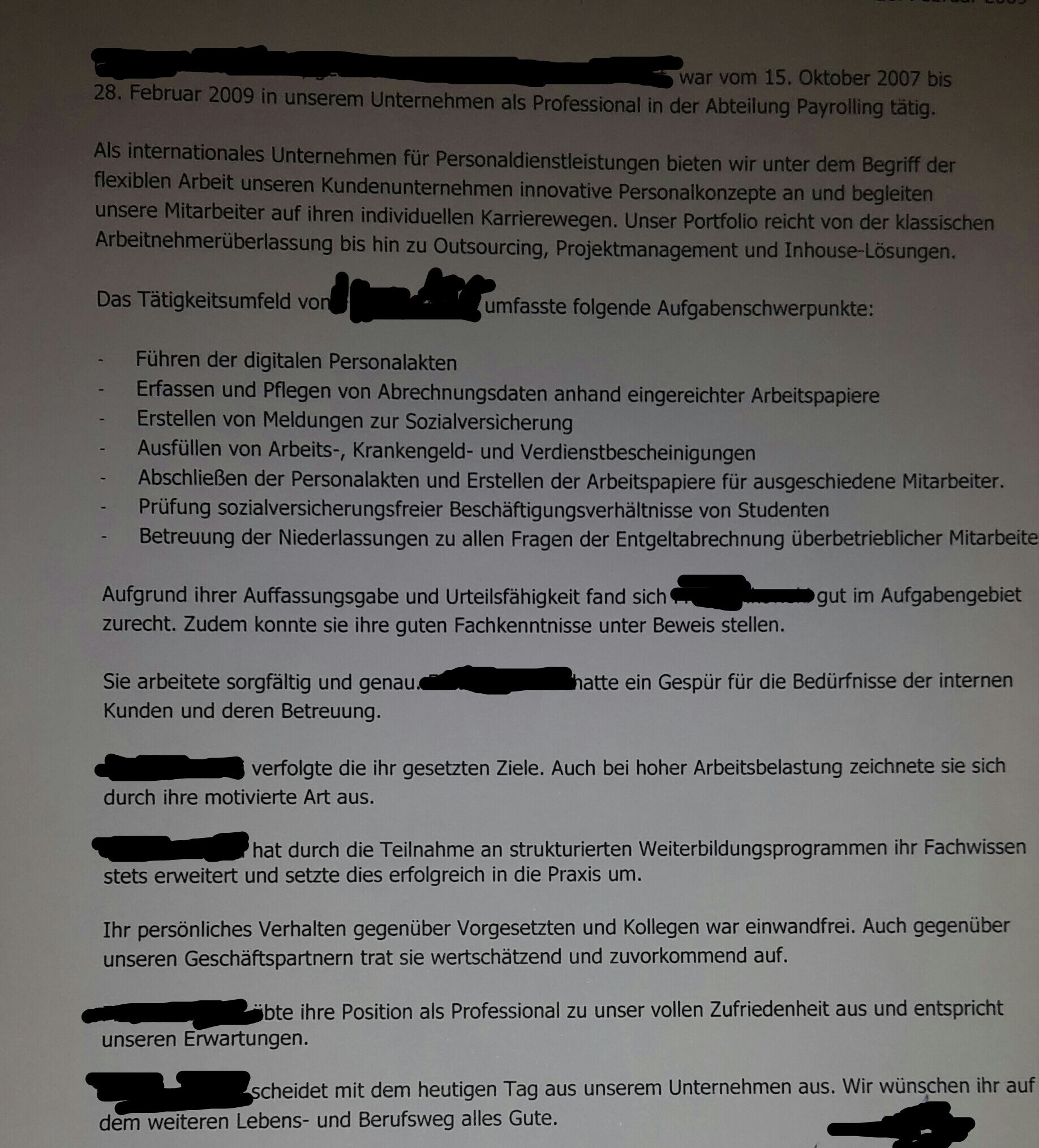 Bitte stelle das komplette Zeugnis hier ein, d.h. mit Aufgaben, Beginn und Ende der Beschäftigung usw.