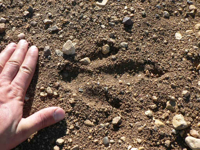 hier ein - wenn auch schlechtes Foto einer Nandu-Fußspur.