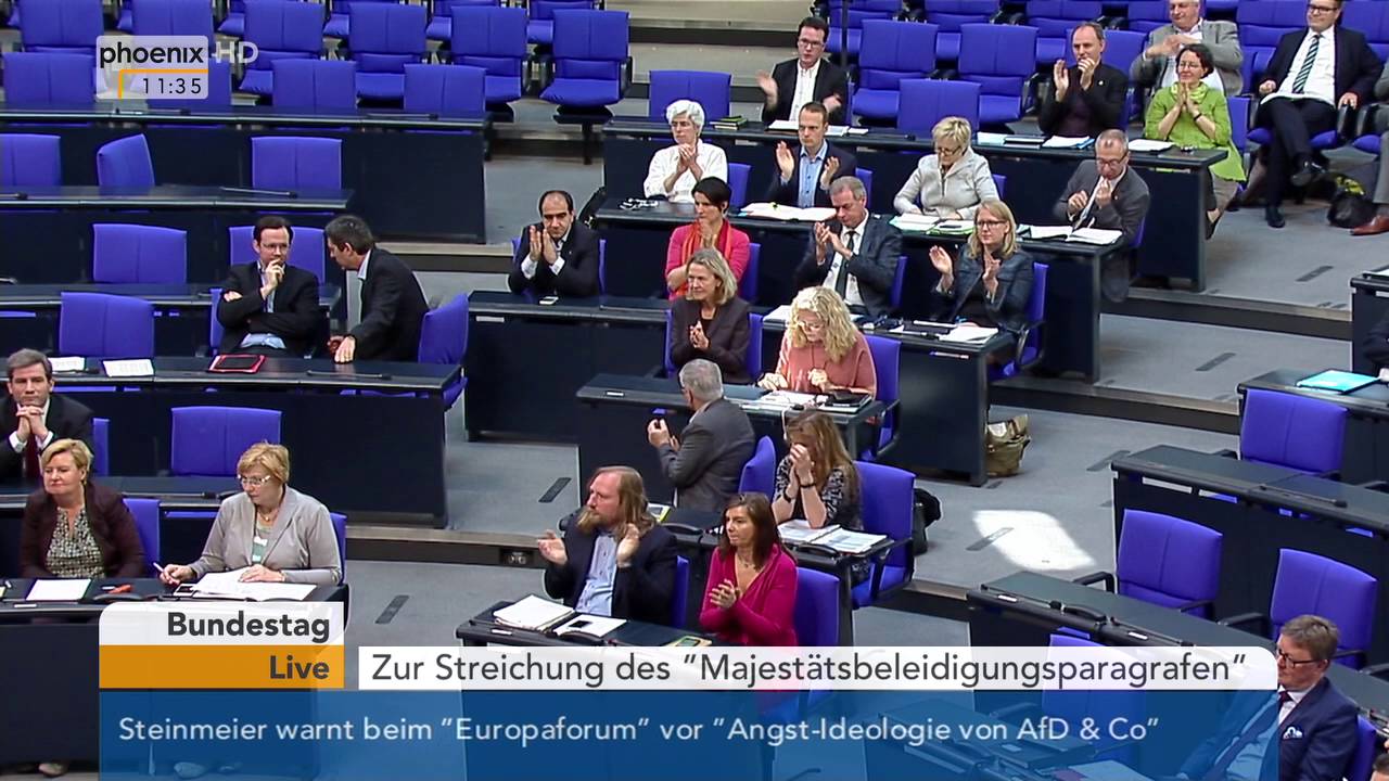 Es ging um den Paragrapen, zu dessen Aufhebung man sich ja blindlings (aus Dummheit) aufraffen will. Was der MdB sich dachte, könnte man evtl. bei Einsicht in die Redeprotokolle erfahren. Diese werden in einigen Tagen über die Homepage des BT einsehbar sein. Er ist sicher nicht aufgestanden, hat das Schmähgedicht vorgetragen und sich wieder kommentarlos gesetzt.