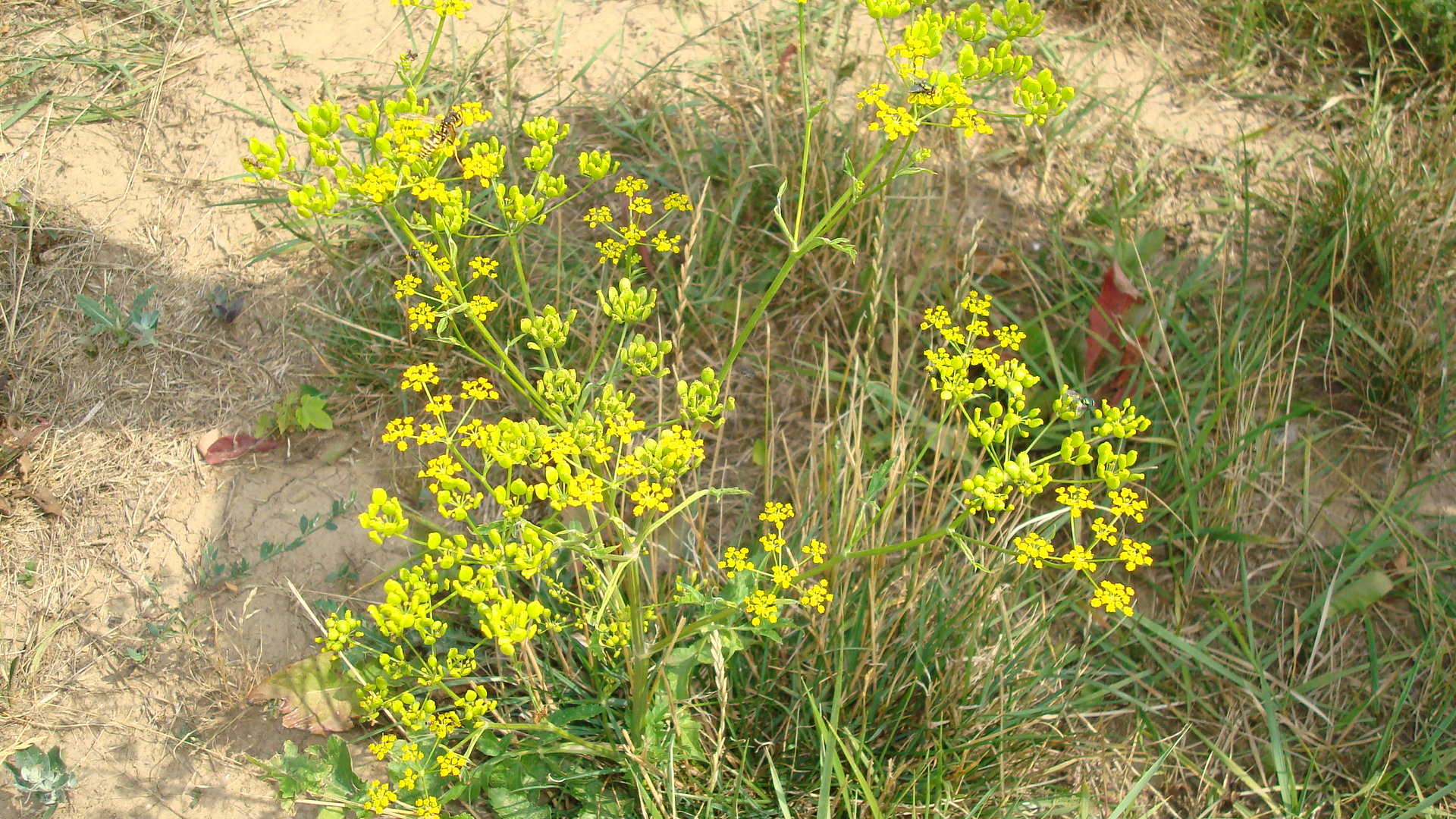 bei einem Spaziergang in der nähe von Mainz habe ich heute einen gelb blühenden Doldenblütler gefunden, den ich nicht zuordnen konnte. Kennt vielleicht jemand den Namen dieser Pflanze? Leider sieht man die Blätter ganz unten nicht gut, aber sie sahen zumindest nicht wie bei der wilden Möhre aus, sondern eher breiter und kürzer und rauher als Löwenzahnblätter.