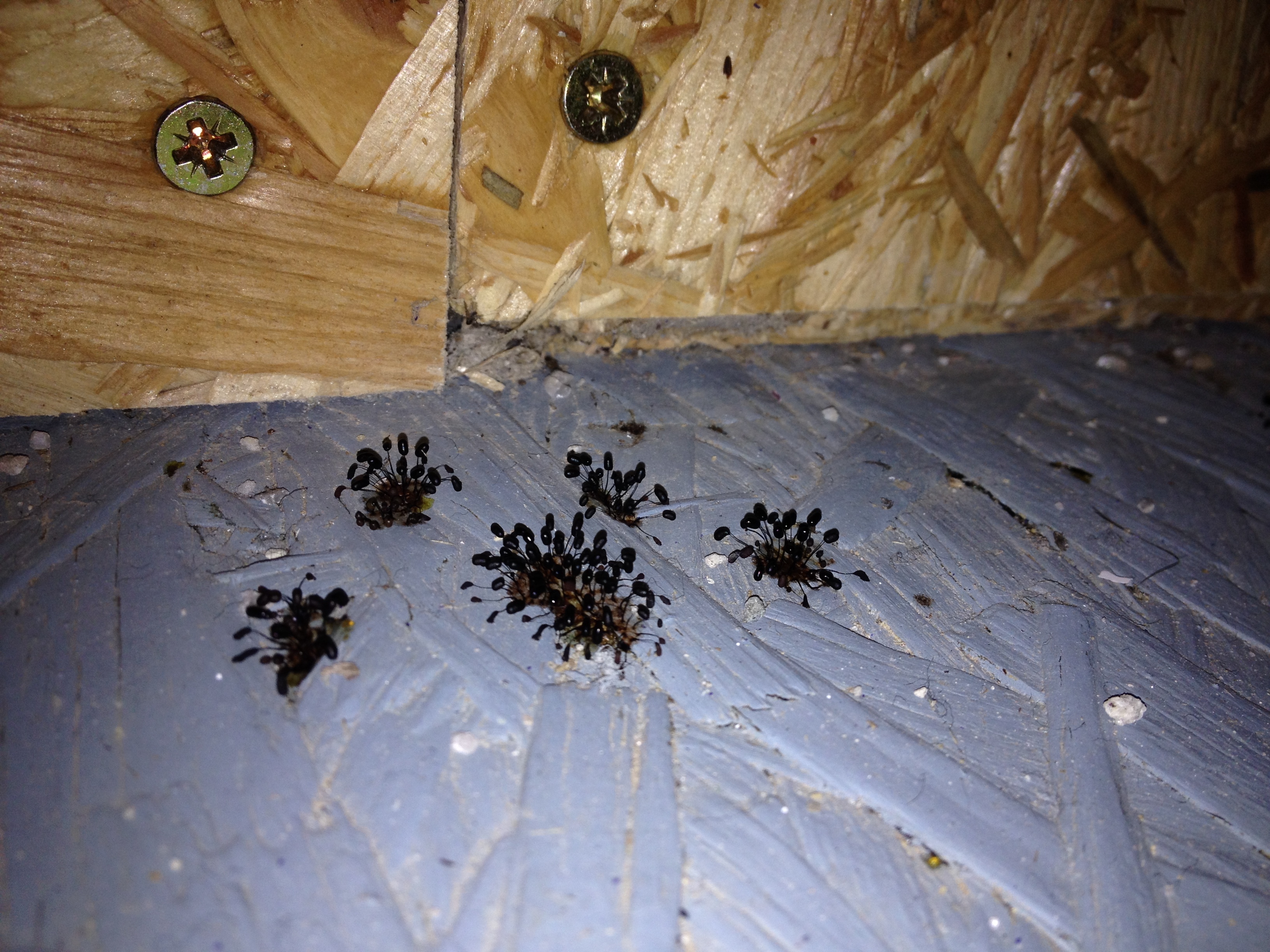 bitte siehe foto anbei. das wächst an mehreren stellen aus dem boden meines geräteschuppens. der boden ist wie man sieht aus holz (osb-platte) und trocken. hab sowas noch nie gesehen.