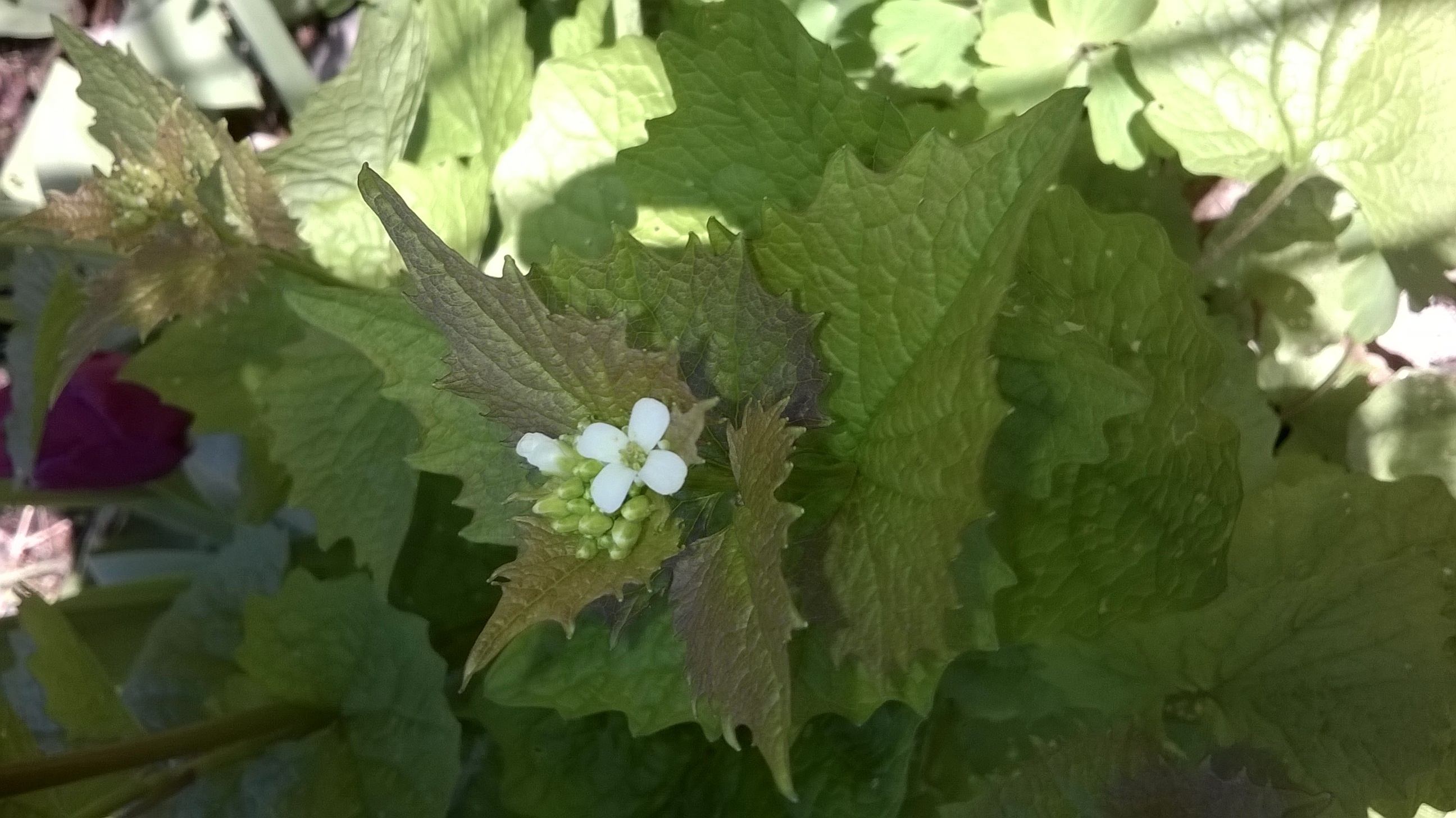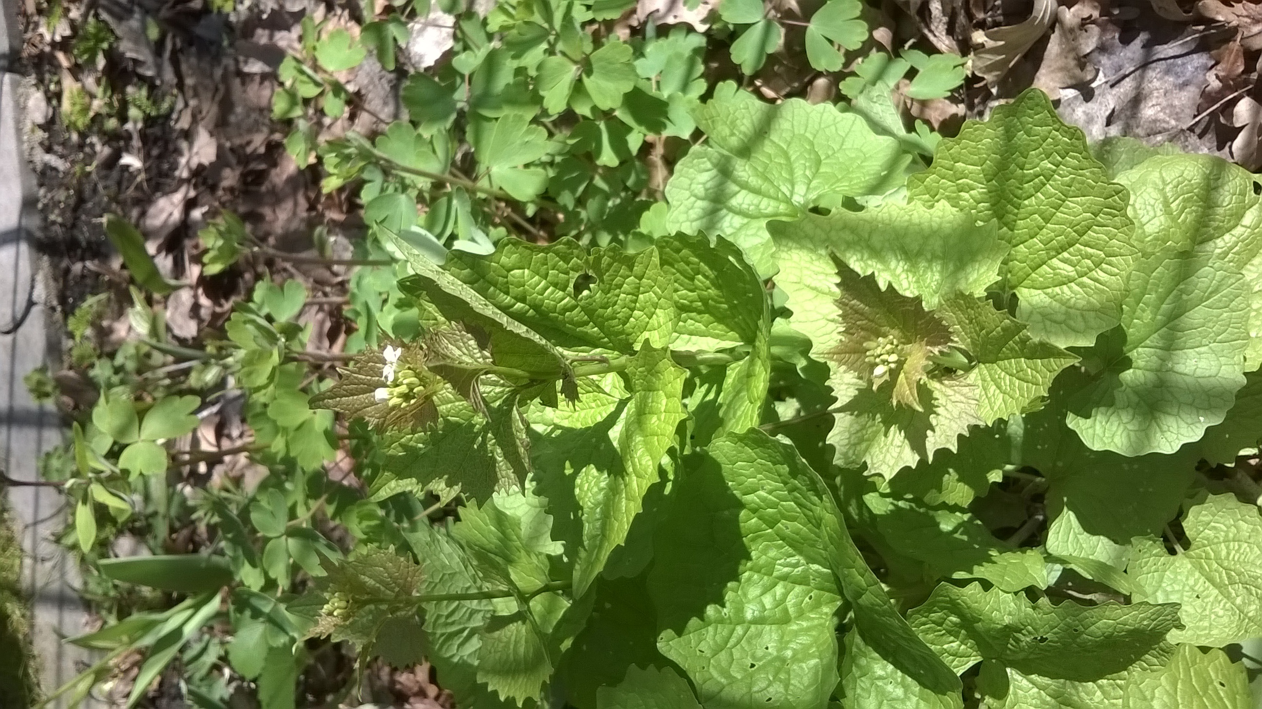 Knoblauchsrauke. Zerreib mal Blatt und riech dran, kann man auch mit kochen, gibt aber Besseres.